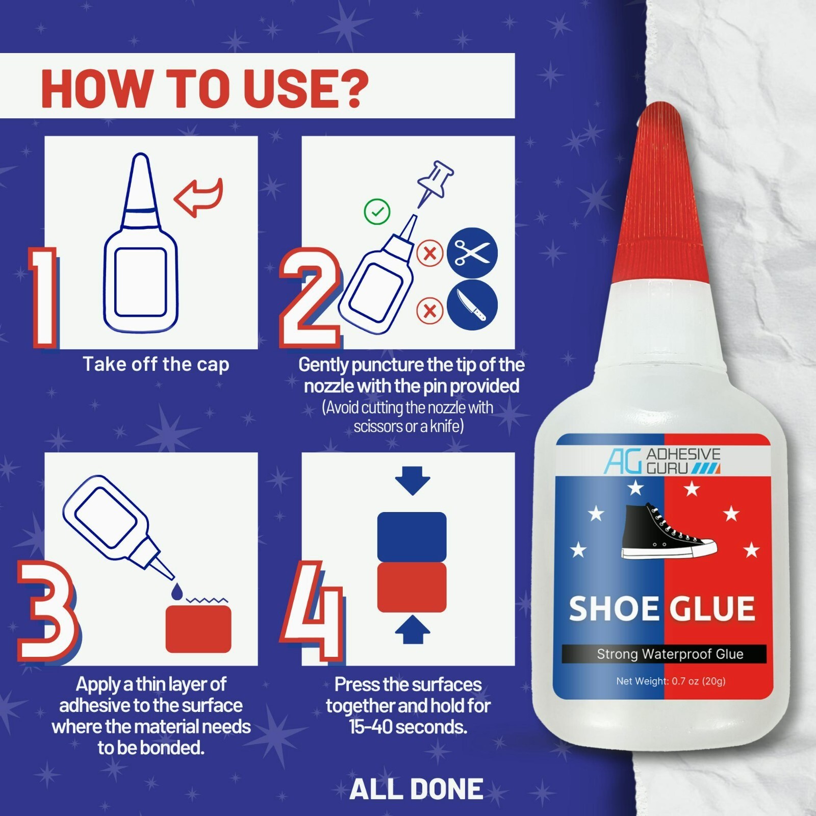 Adhesive Guru Professional Shoe Glue 0.7 oz Shoe Sole Repair Ultimate Shoe