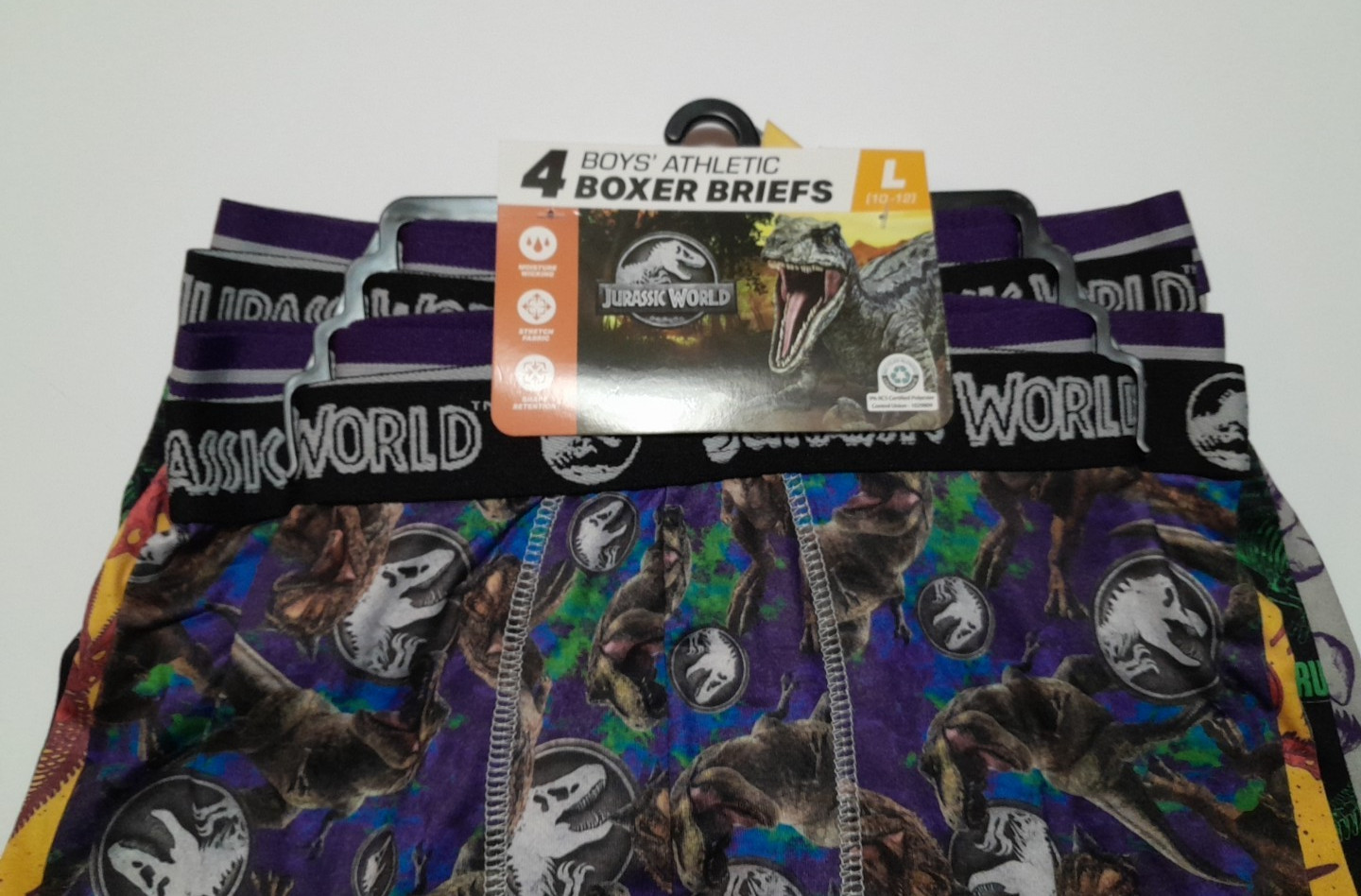 Jurassic World Boys' 4-Pack Athletic Boxer Briefs Size L 10/12 New