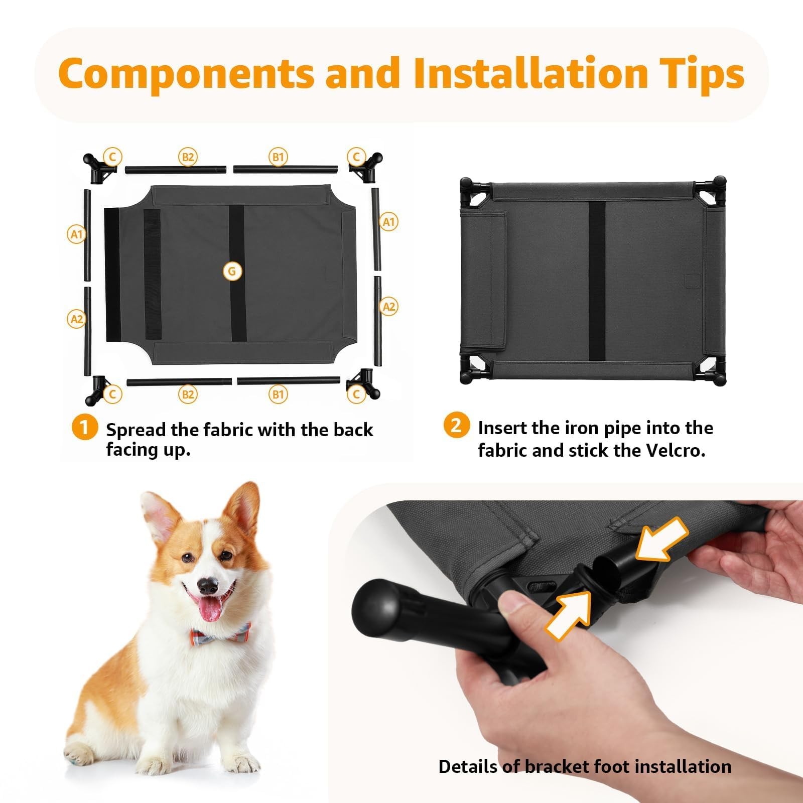 Indestructible Canvas Chew-Proof Elevated Dog Bed, Durable Outdoor Raised Pet...
