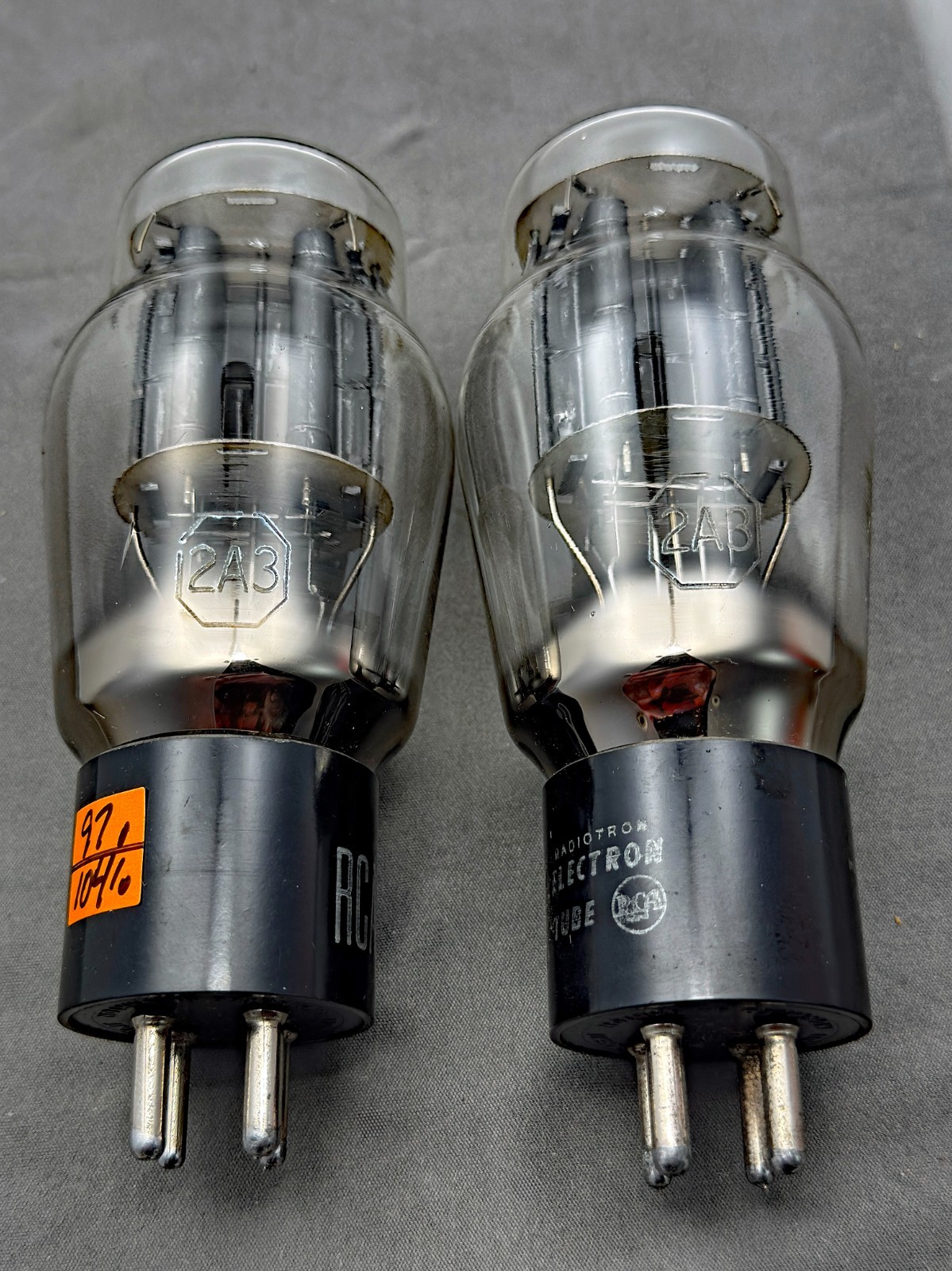 Matched NOS Pair RCA 2A3 Black Plate Tubes Excellent Cond Matched Codes 1947