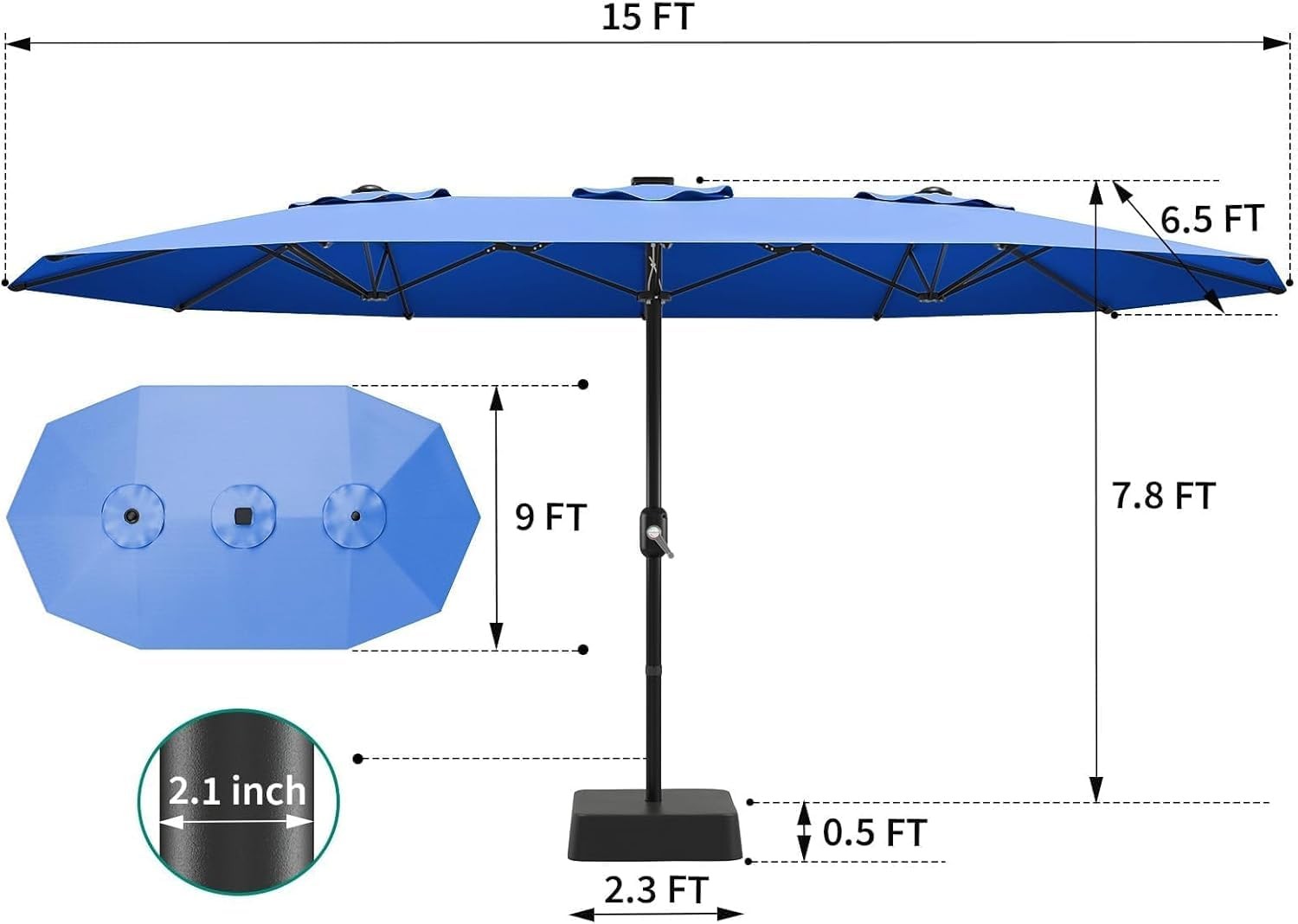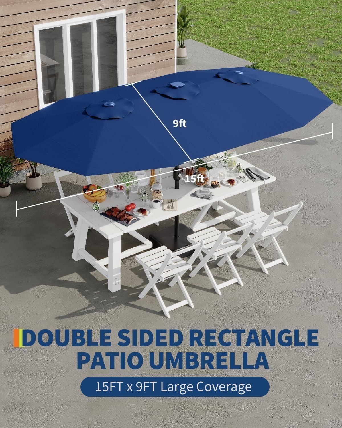15FT Rectangular Patio Umbrella With Base Included