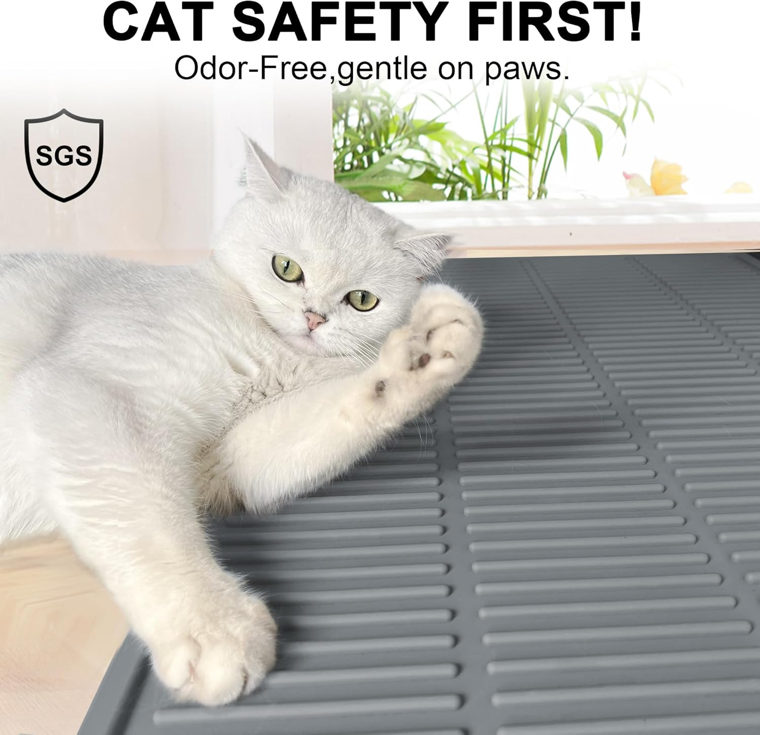 Cat Mat for Litter Box: Groove Design for Scatter Control - Easy Clean Silicone