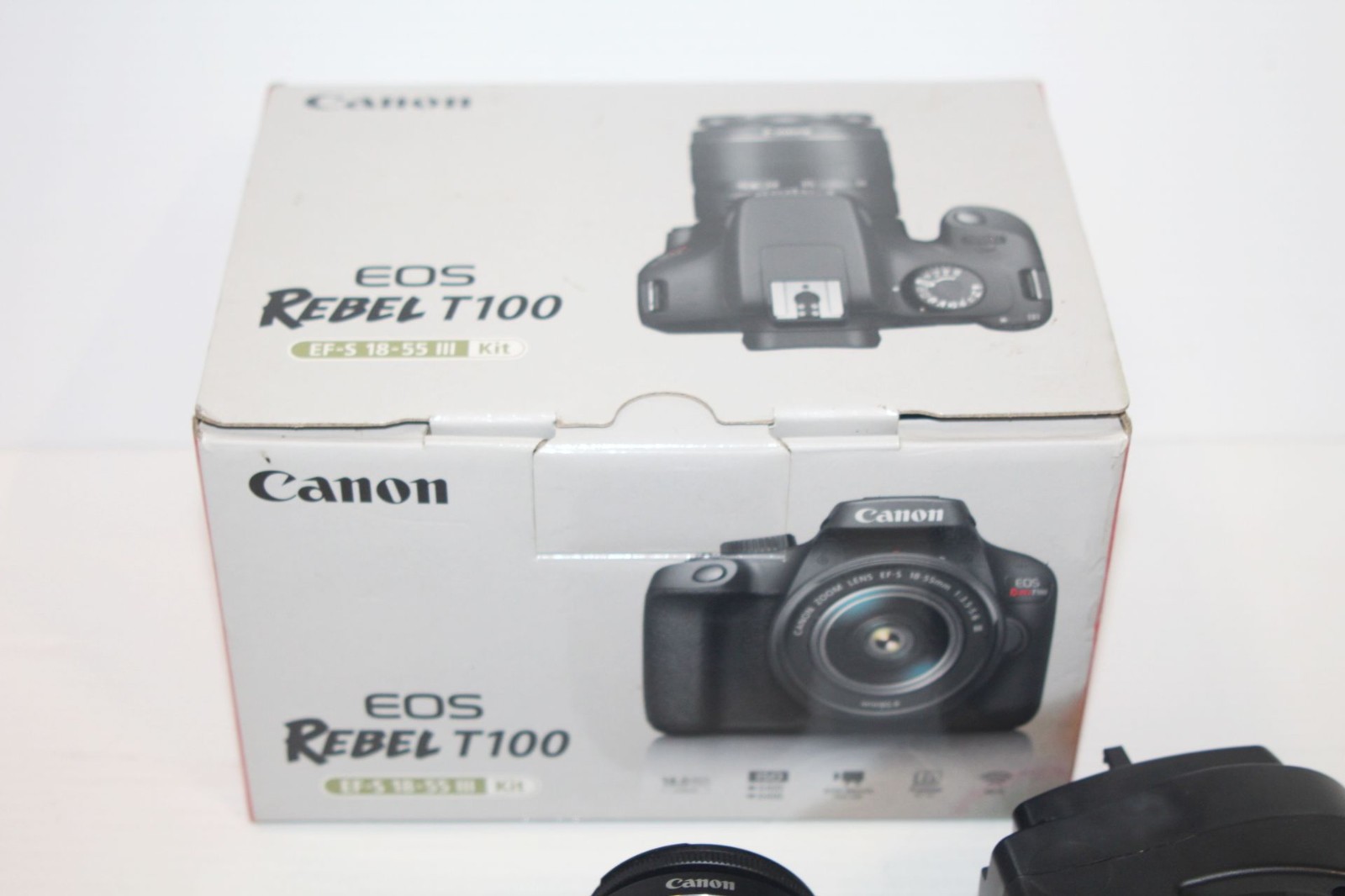 как выглядит Canon EOS Rebel T100 Digital SLR Camera EF-S 18-55mm Lens 64GB SD- NM w/ Box фото