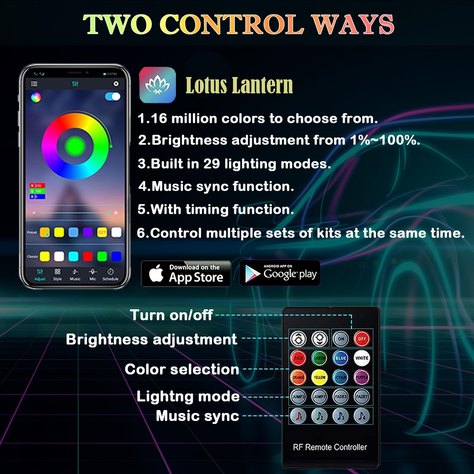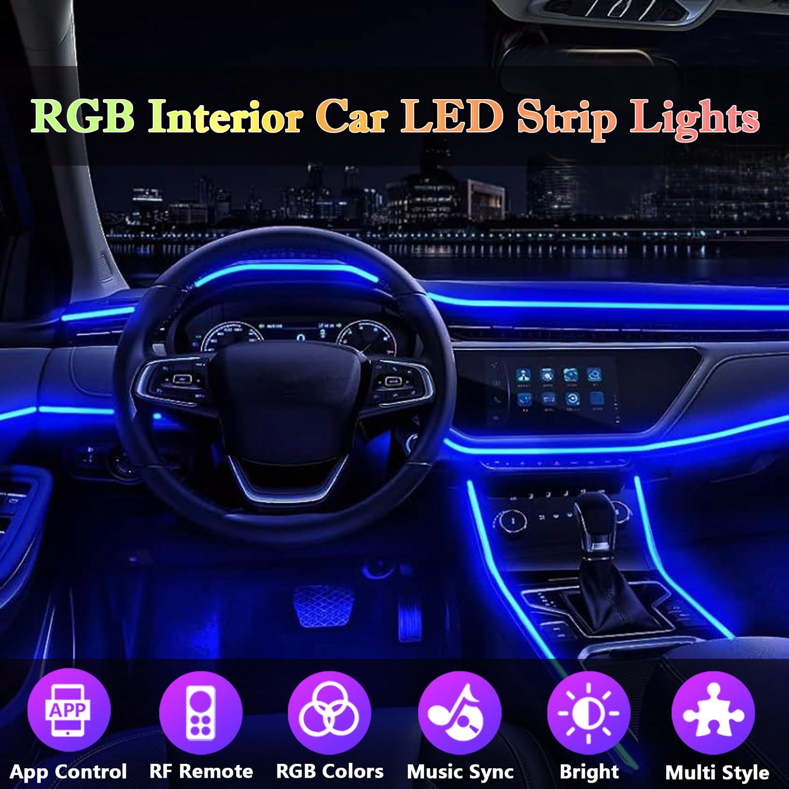 Interior Car LED Strip Lights RGB 6 in 1 Ambient Kit 315 Inch Fiber Optic APP