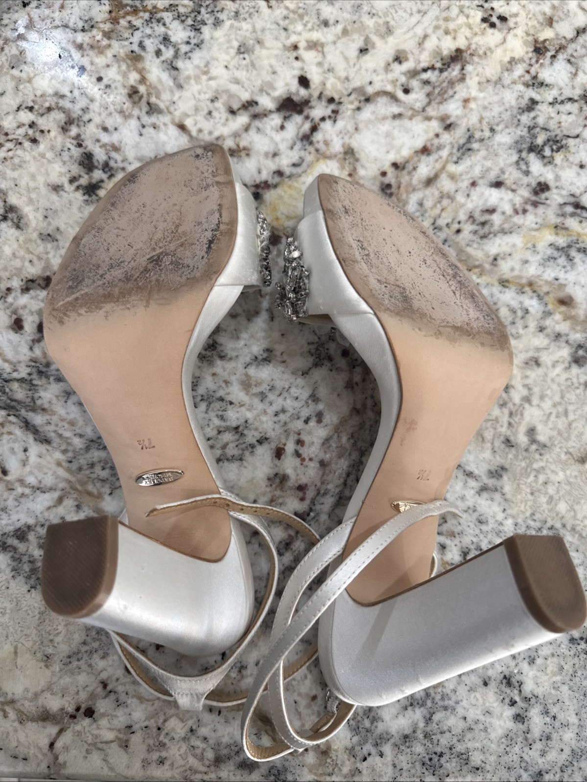 как выглядит Badgley Mischka Heels Alexa Satin Soft White Shoes Size 7.5 фото