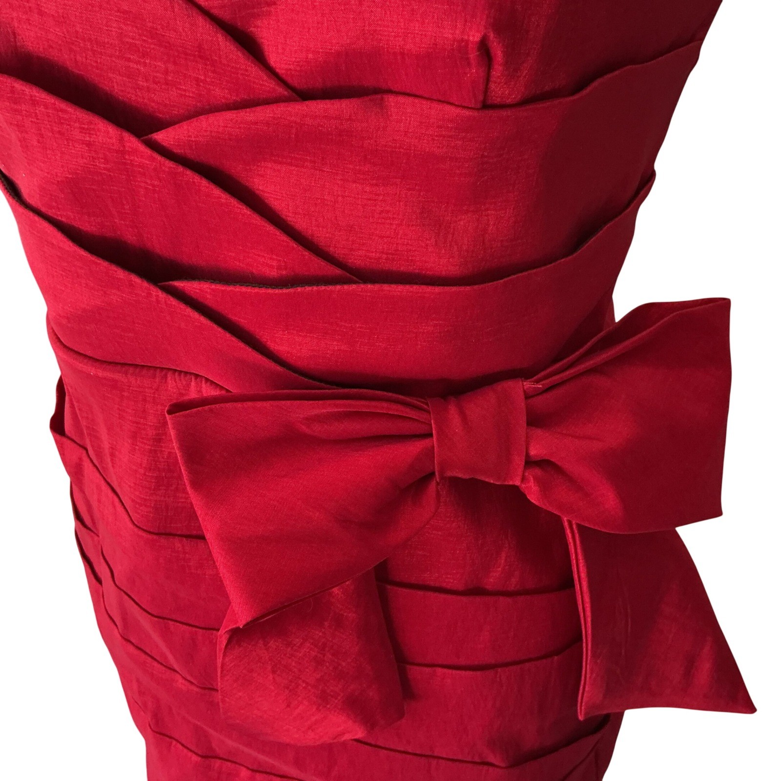 как выглядит Red Strapless Bow Detail Cocktail Dress Early 2010s Glam Fitted Runs Sm фото