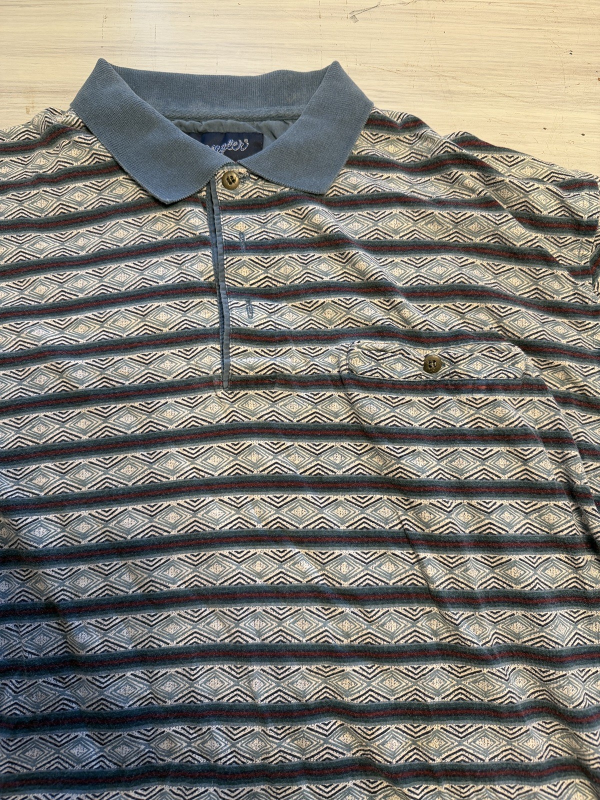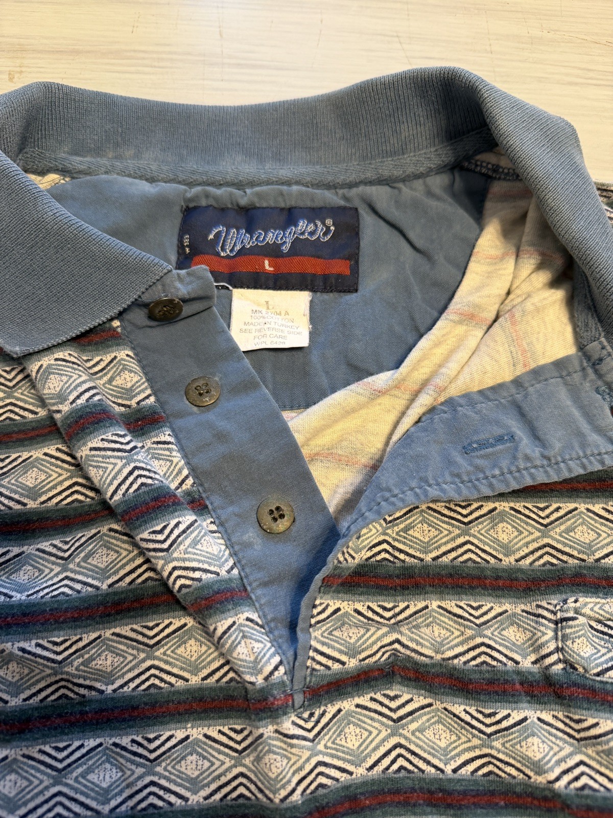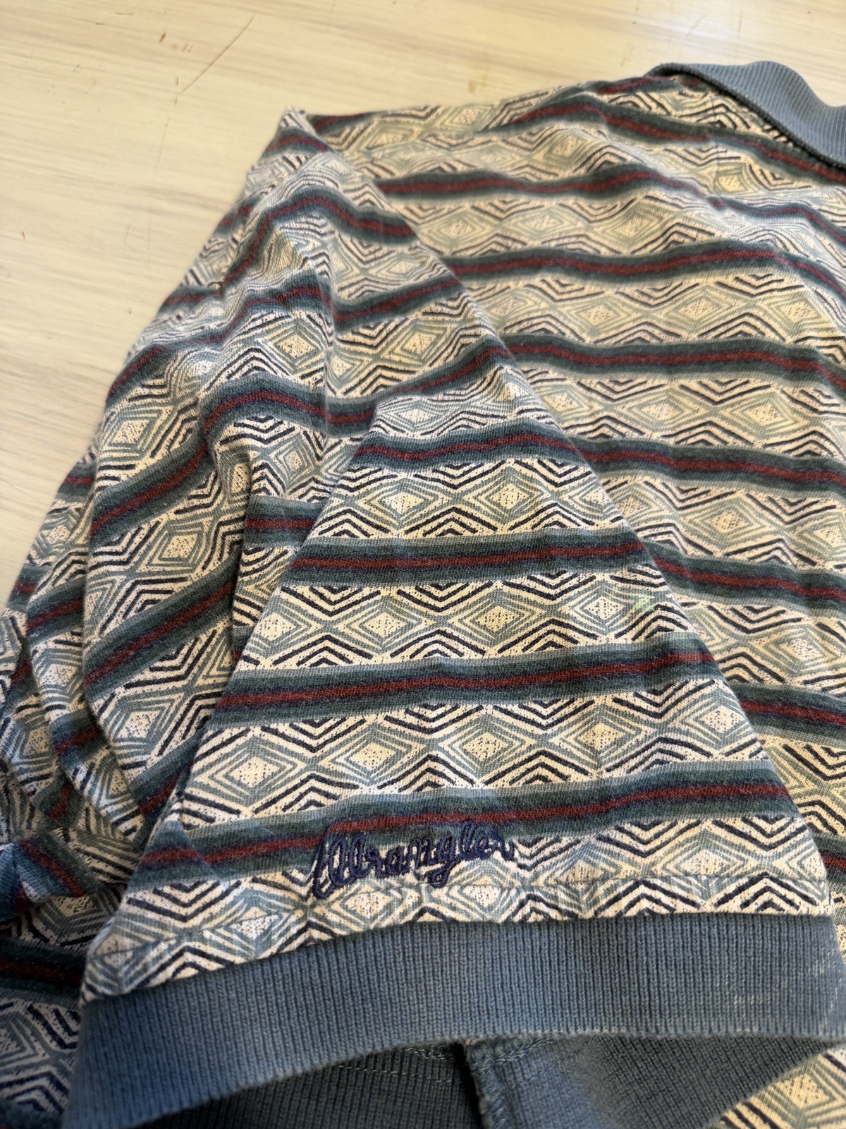 как выглядит VTG Wrangler Mens MD Short Sleeve Polo Shirt Aztec фото