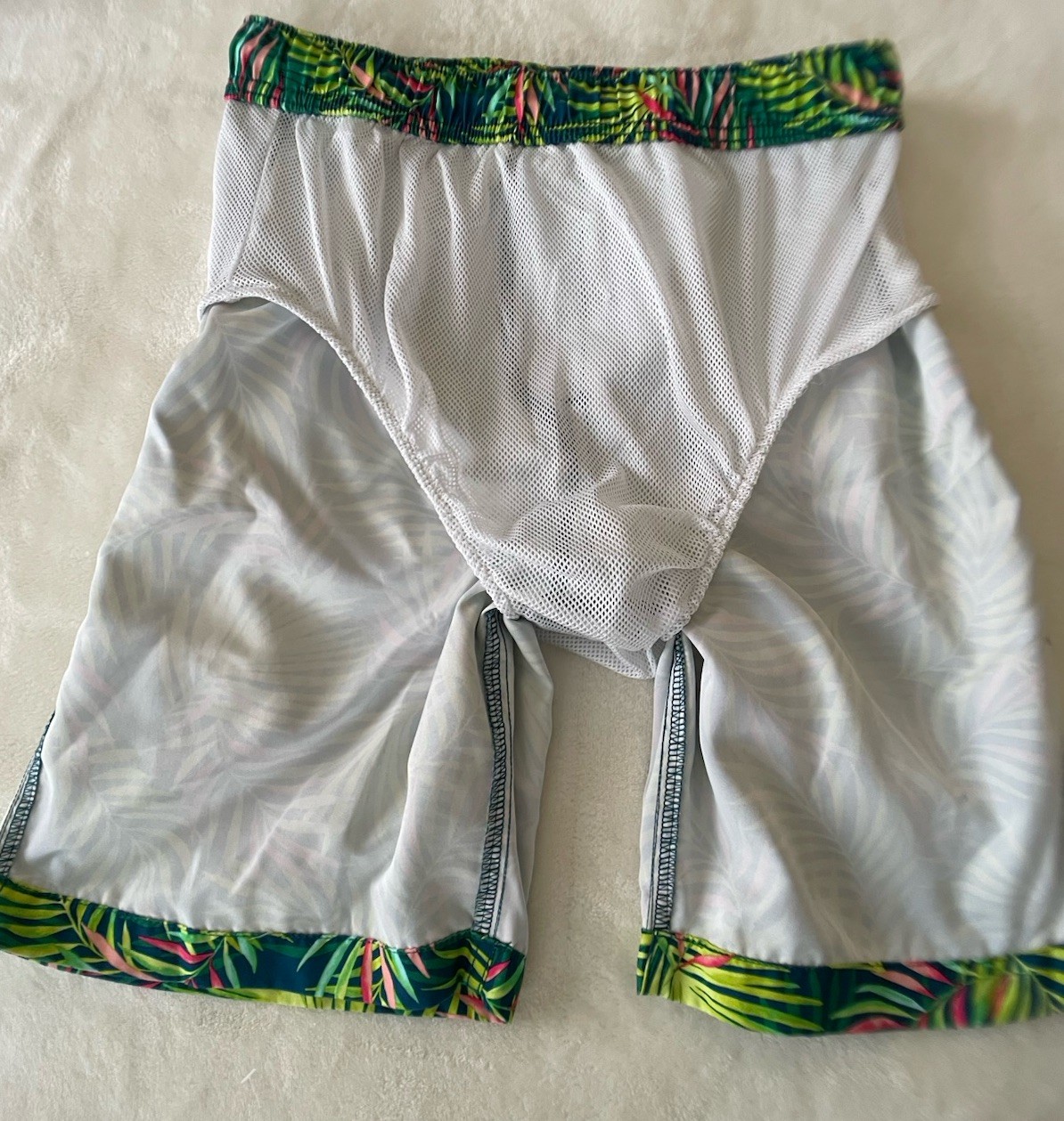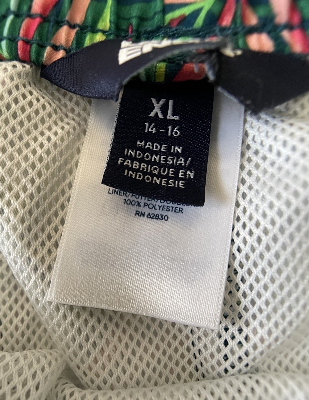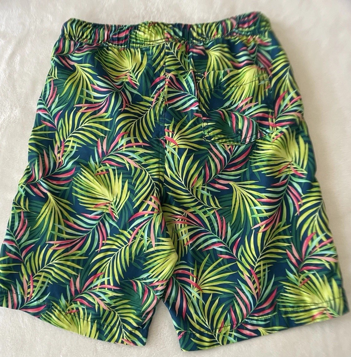 Lands End Swim Trunks Boys Vibrant Tropical Fern Print Size XL Drawstring Pocket