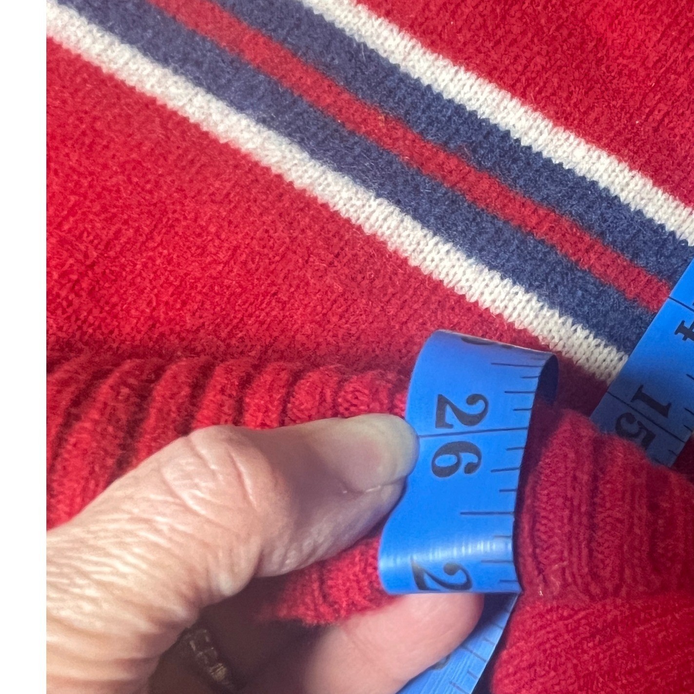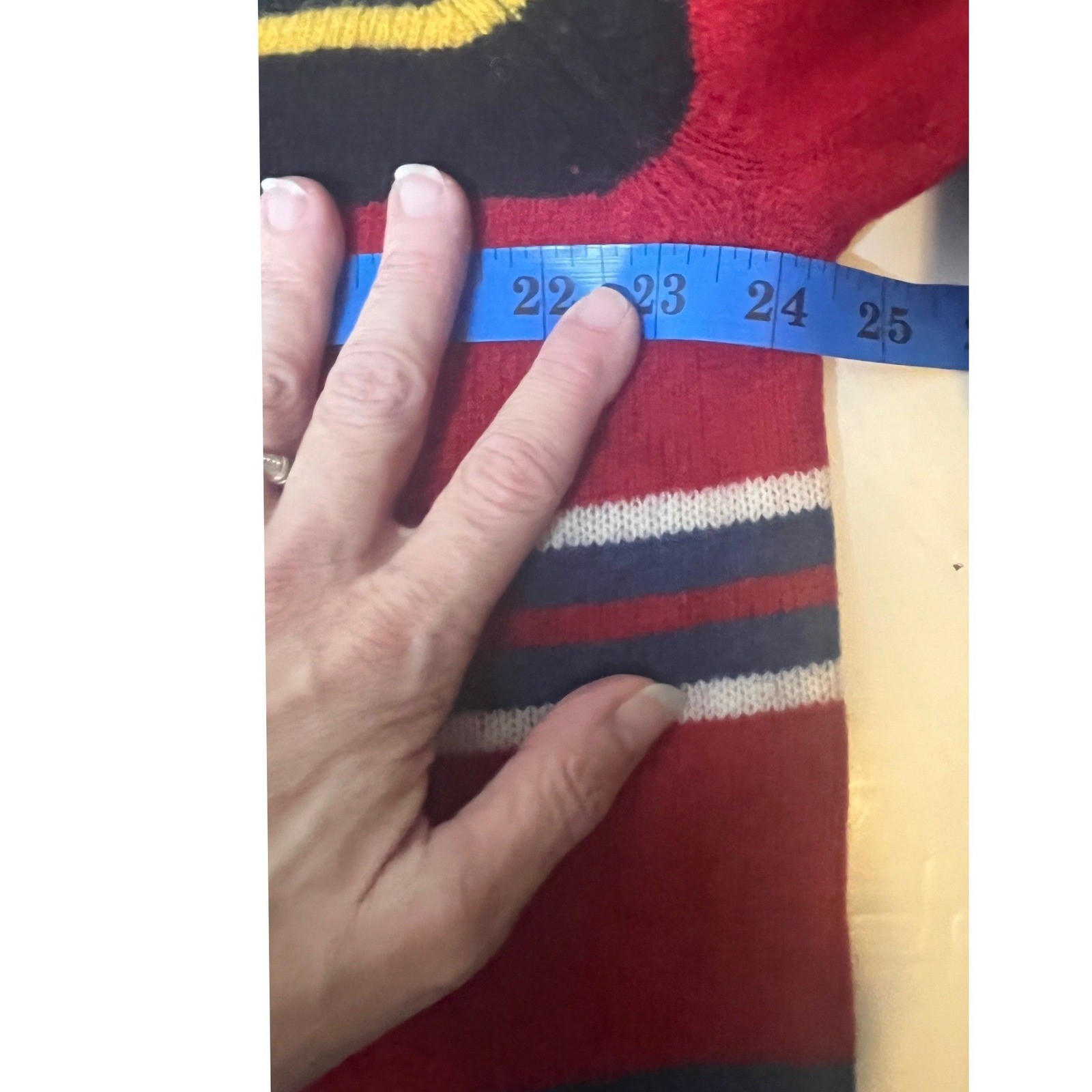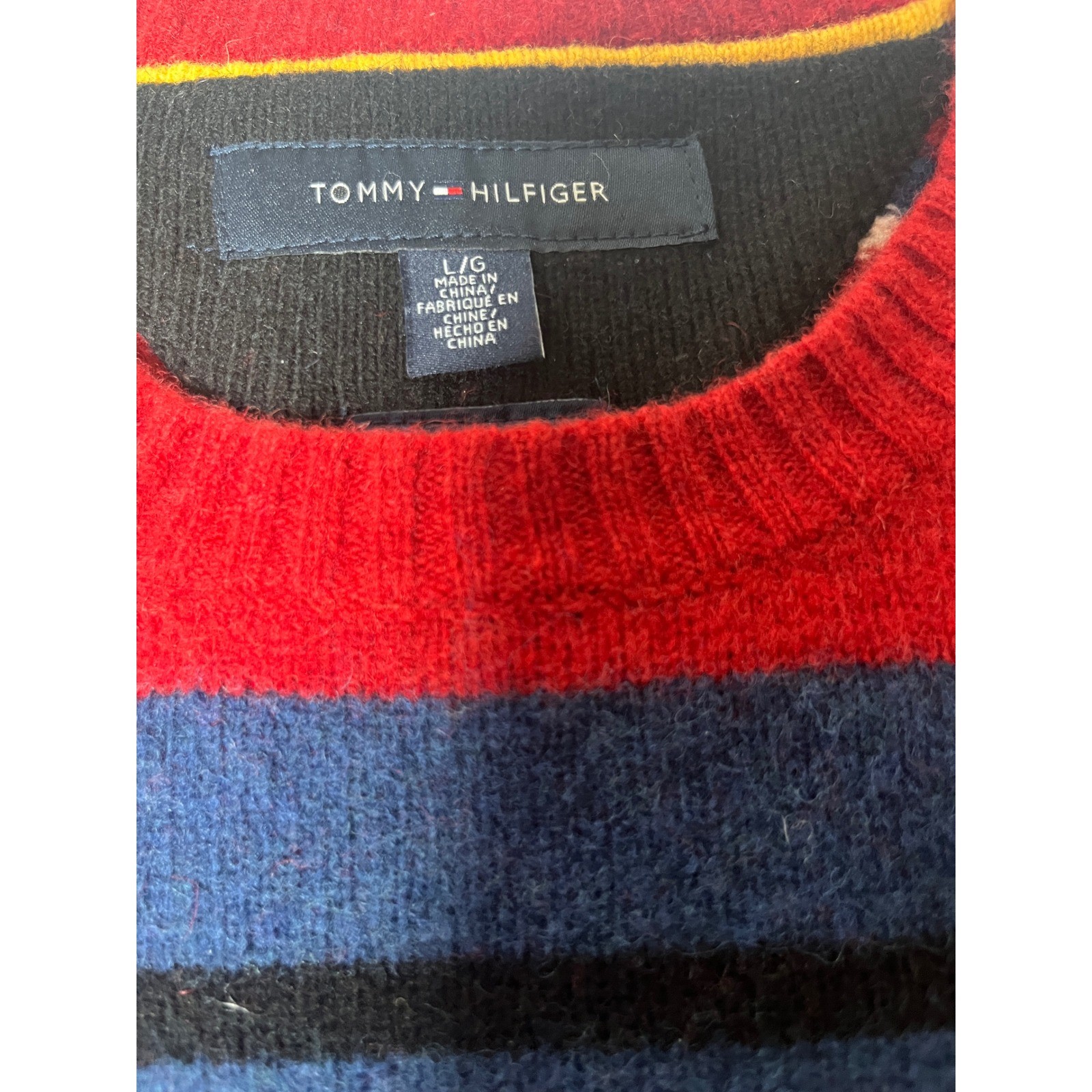 как выглядит Tommy Hilfiger Striped Crewneck Sweater 100 Lambswool Red Blue Black Large фото