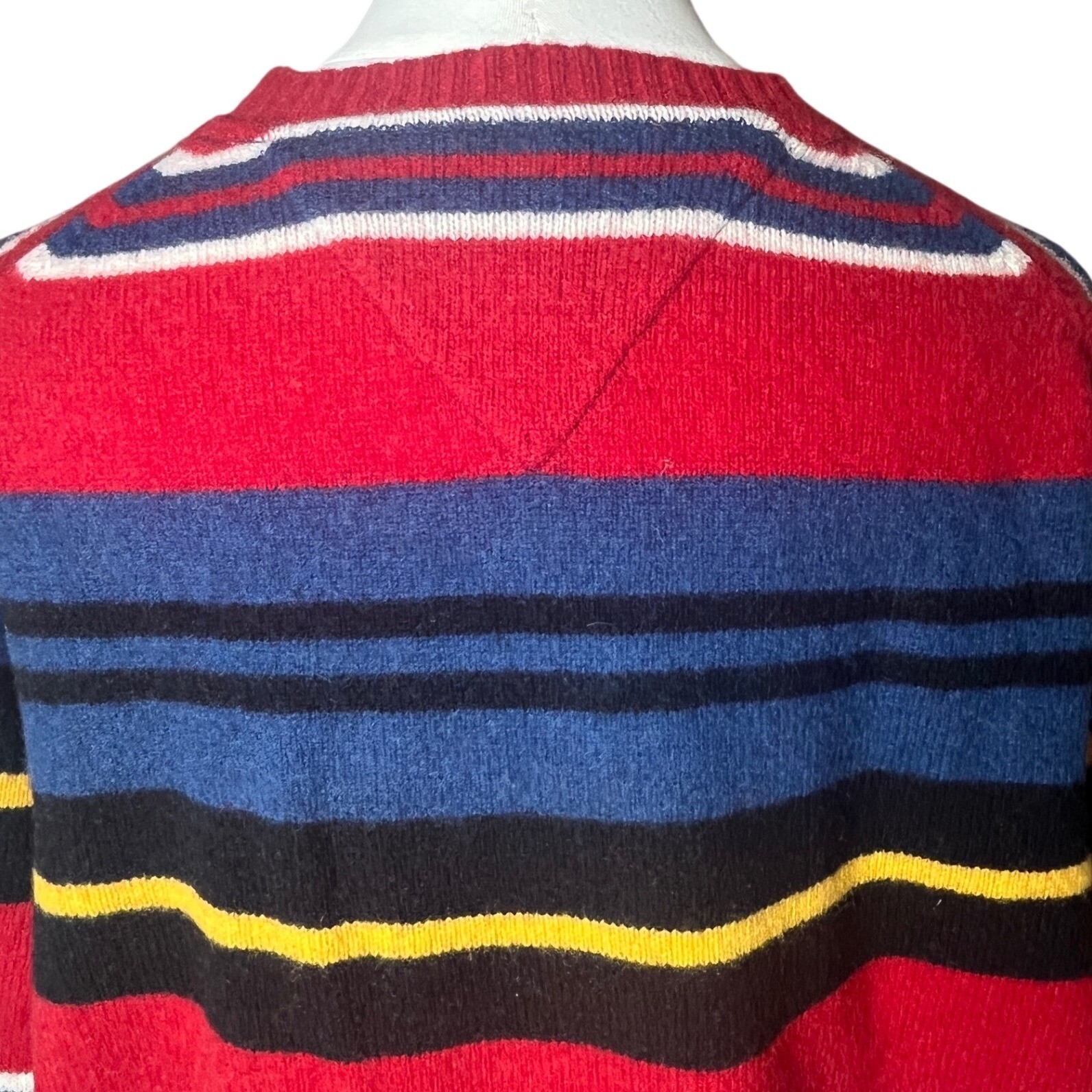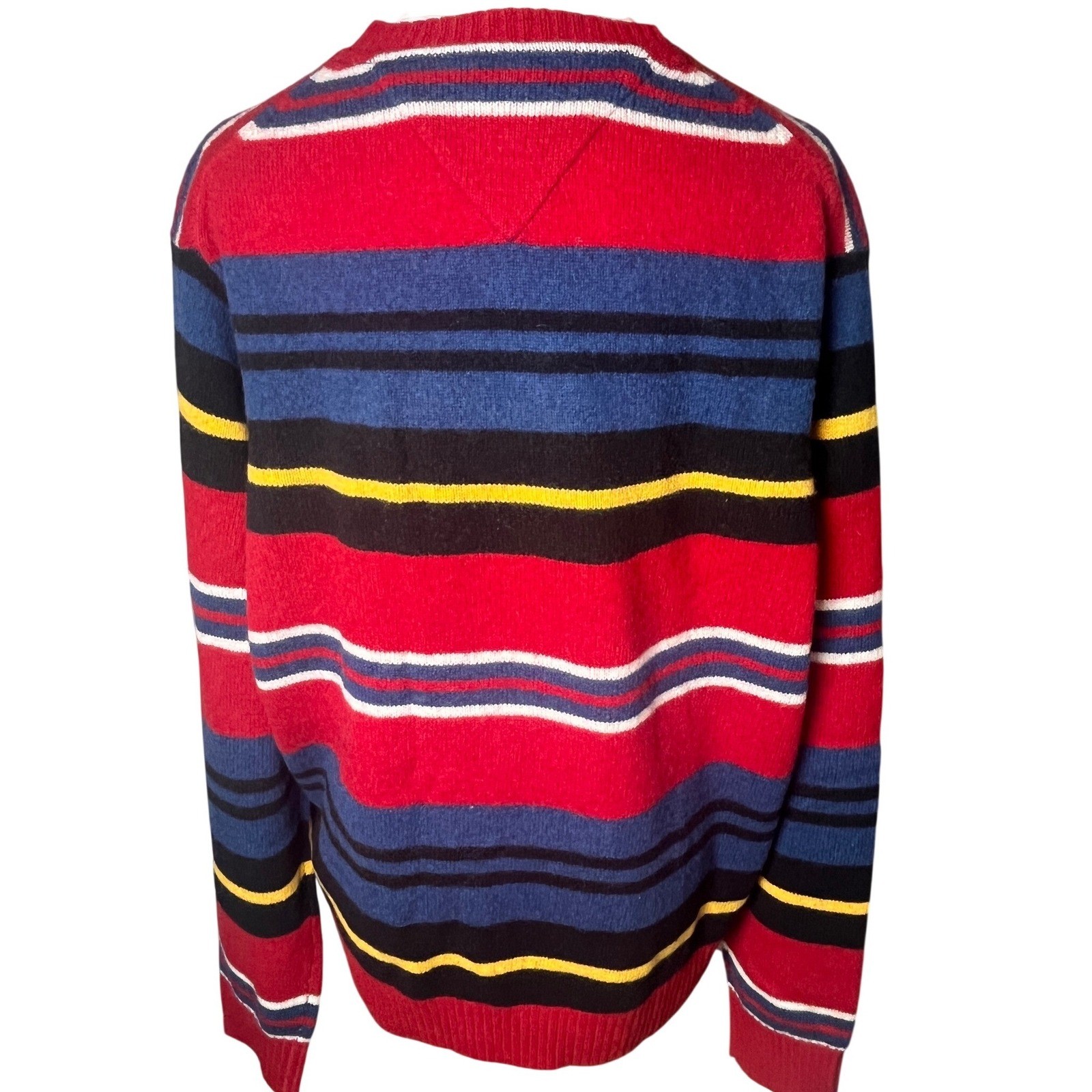 Tommy Hilfiger Striped Crewneck Sweater 100 Lambswool Red Blue Black Large