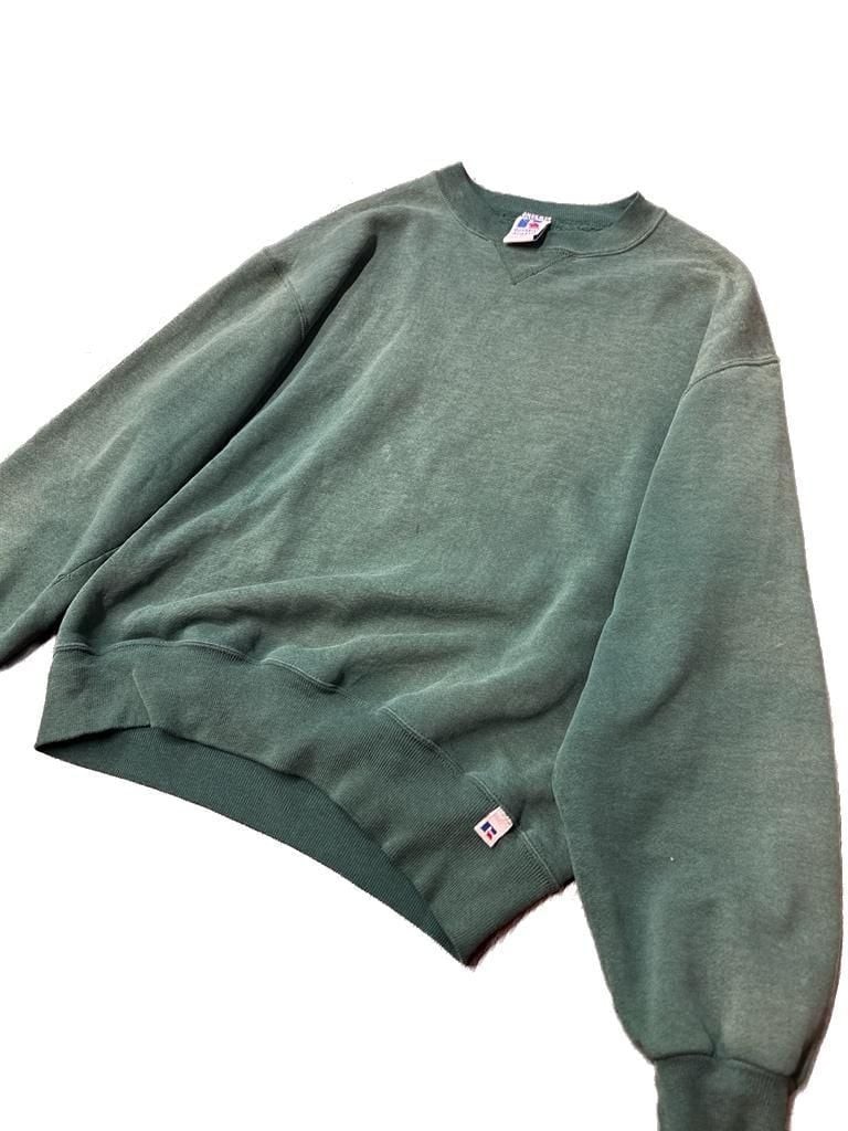 как выглядит Vintage 90s Russell Athletic Made in USA Blank Green Crewneck Sweatshirt фото