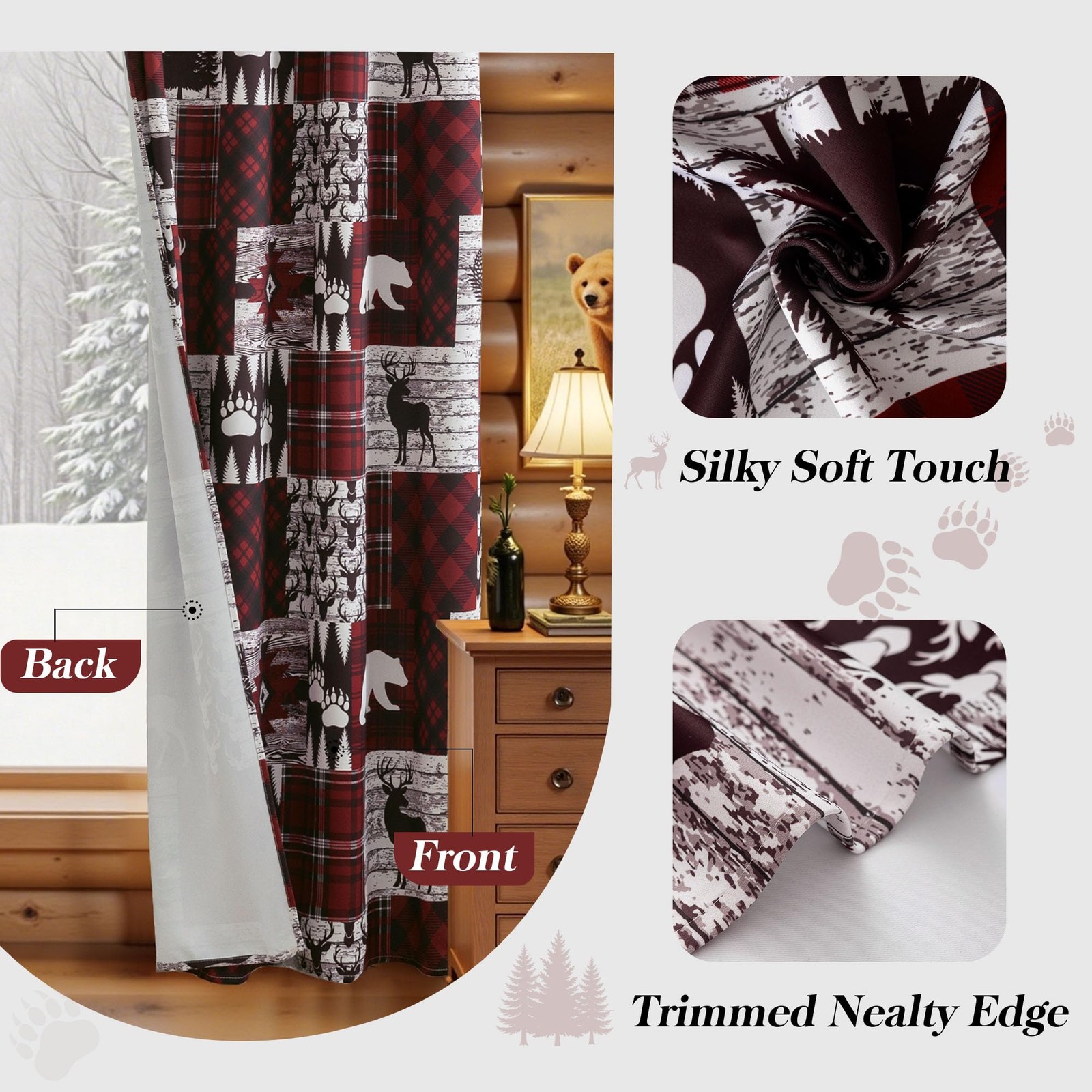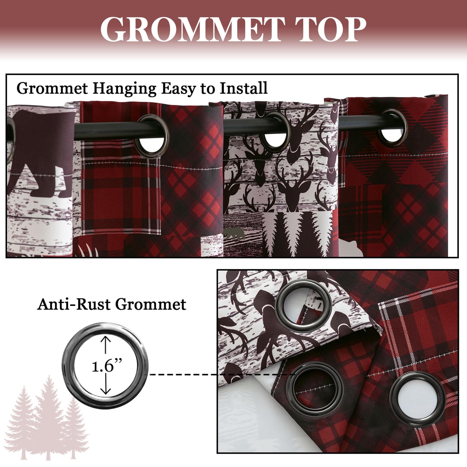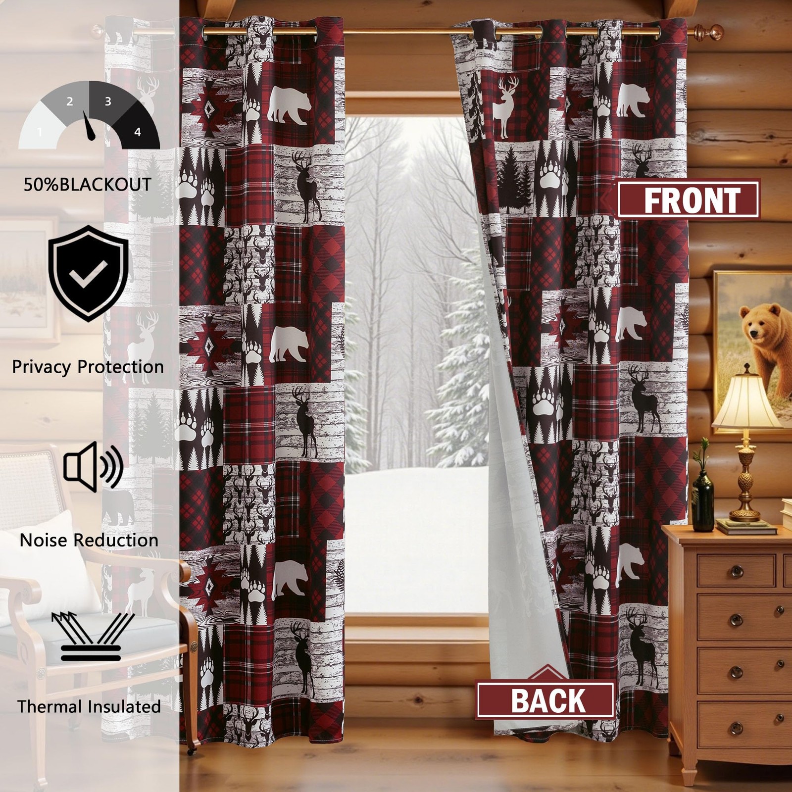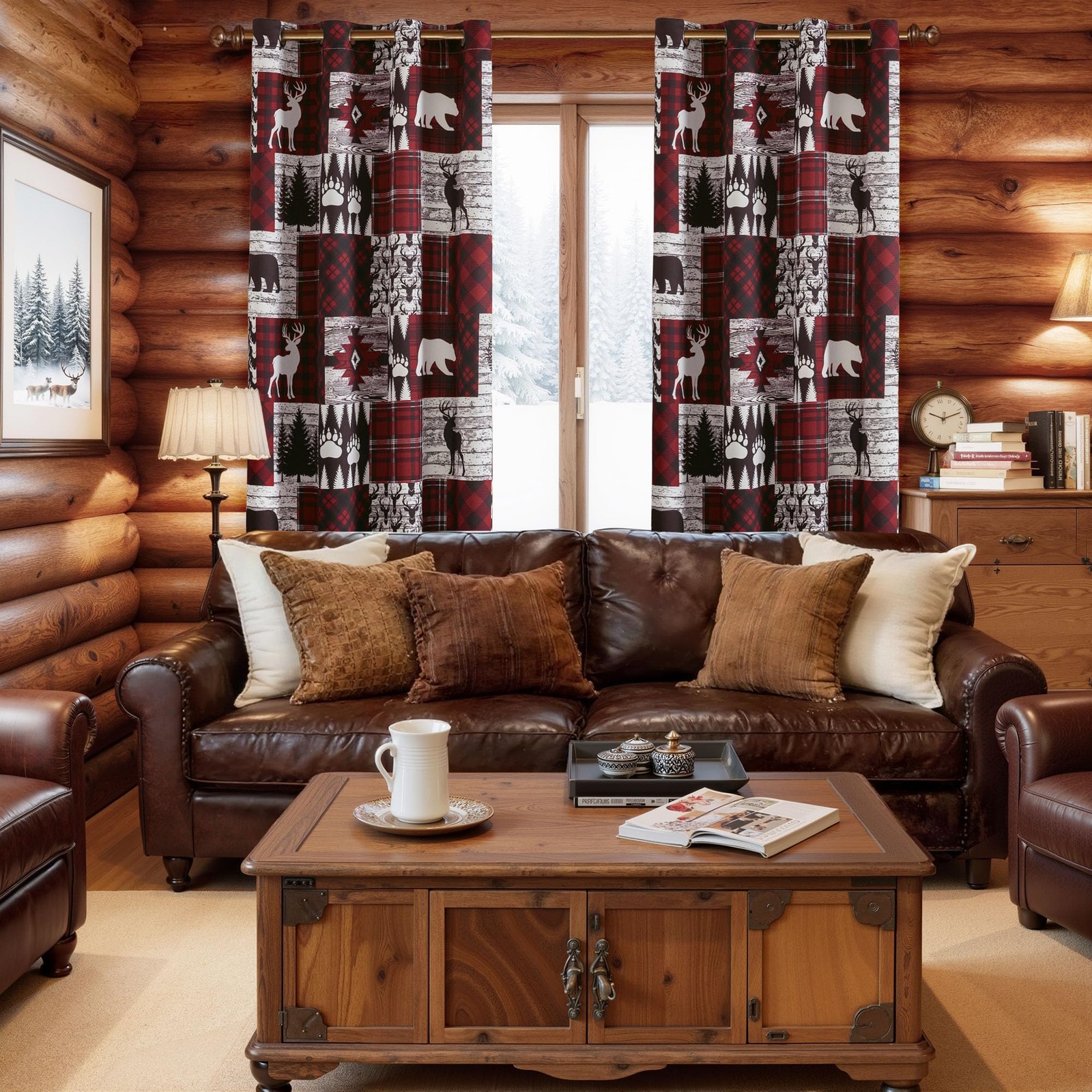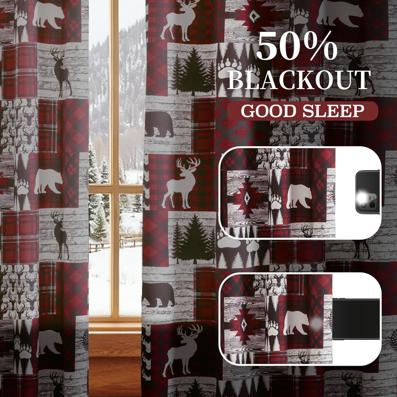 как выглядит Red Rustic Cabin Curtains 2 Panels Country Style 52"W x 63"L Pack of 2 , фото