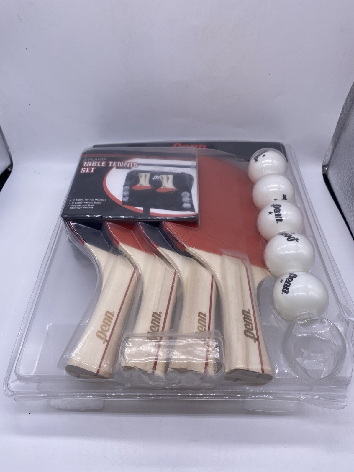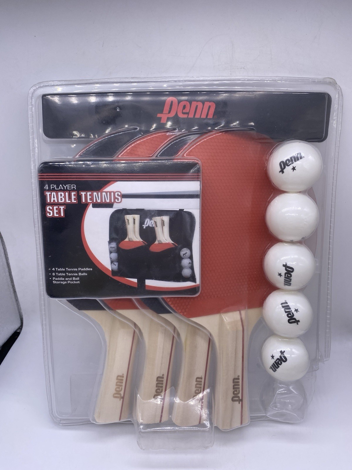 PENN 4 Player Table Tennis Set 4 Paddles 5 Balls Storage Bag NEW Ping Pong