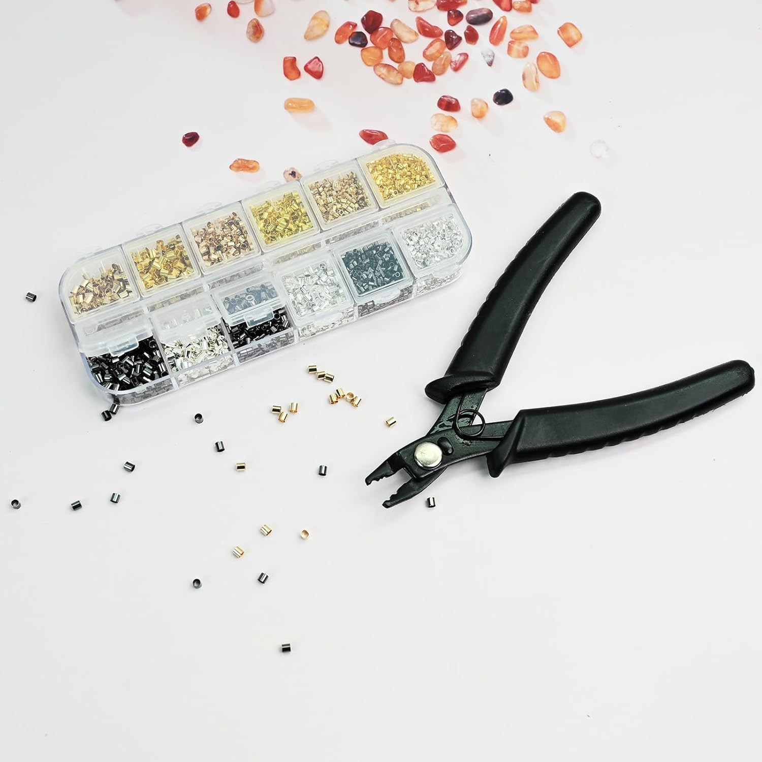 как выглядит 2200 Pieces Crimp Beads for Jewelry Making - 3 Sizes 4 Colors - Beads for Brac фото