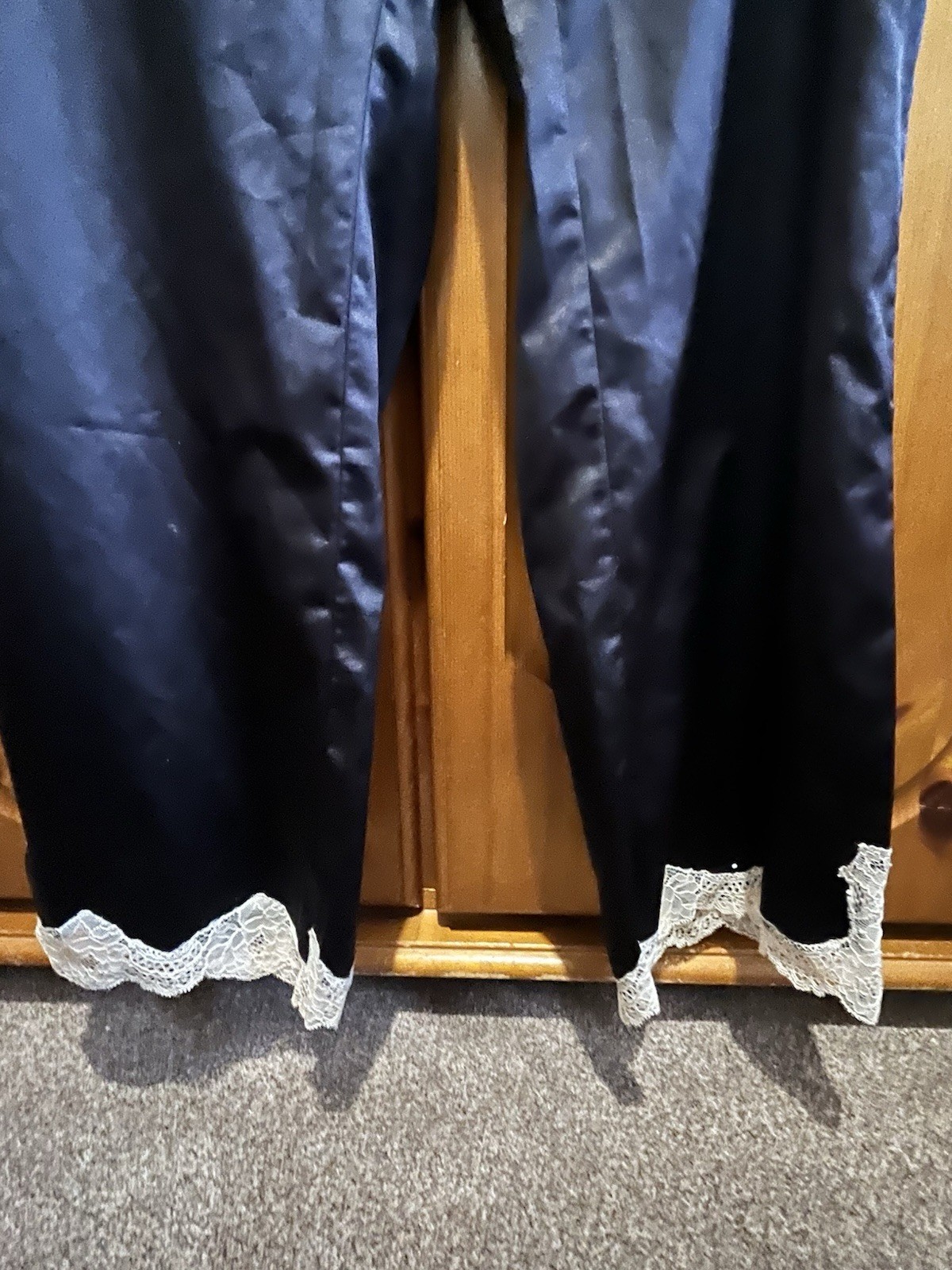 как выглядит Boux Avenue Luxury Black Satin Cream Lace Trim PJ Set Women s Size 12 фото