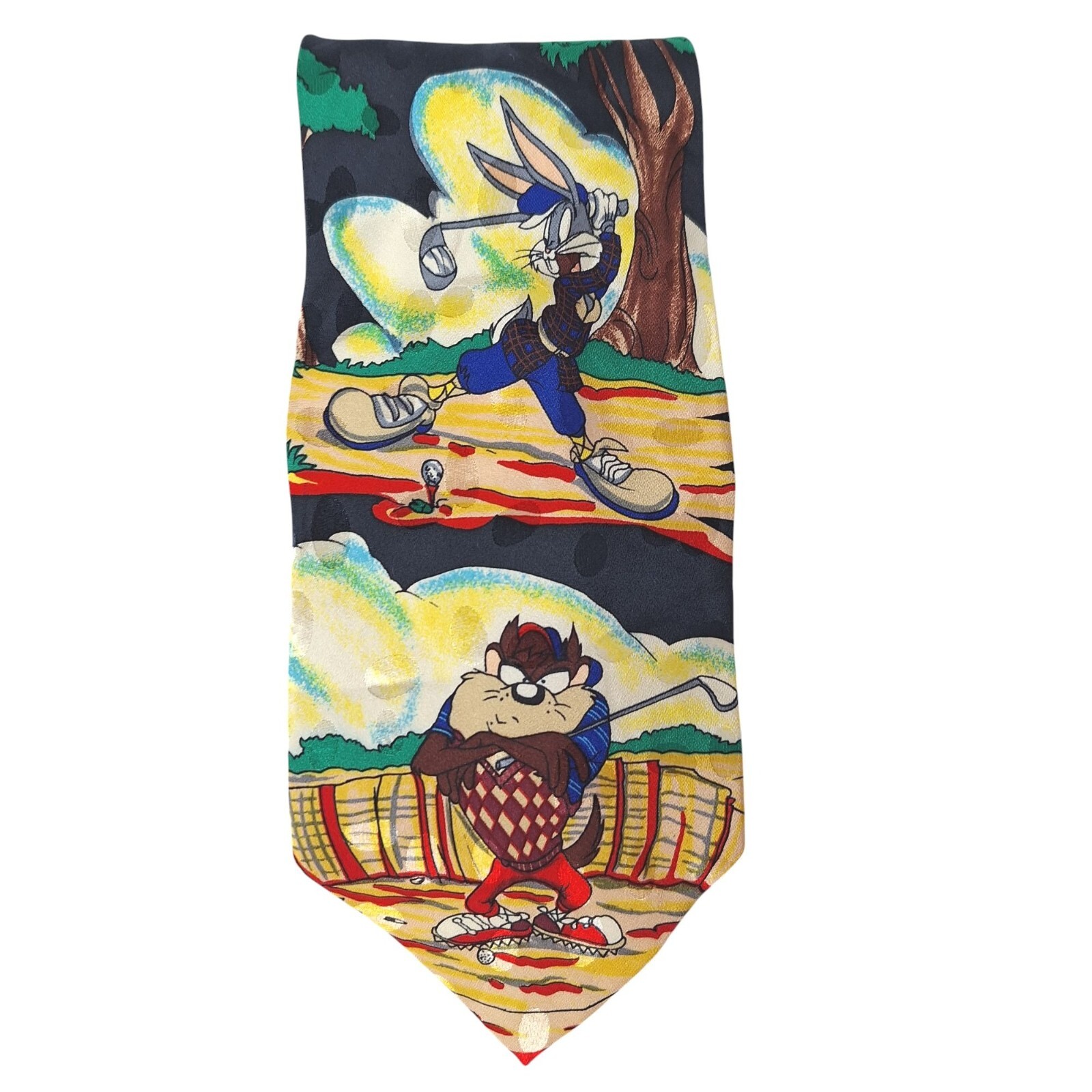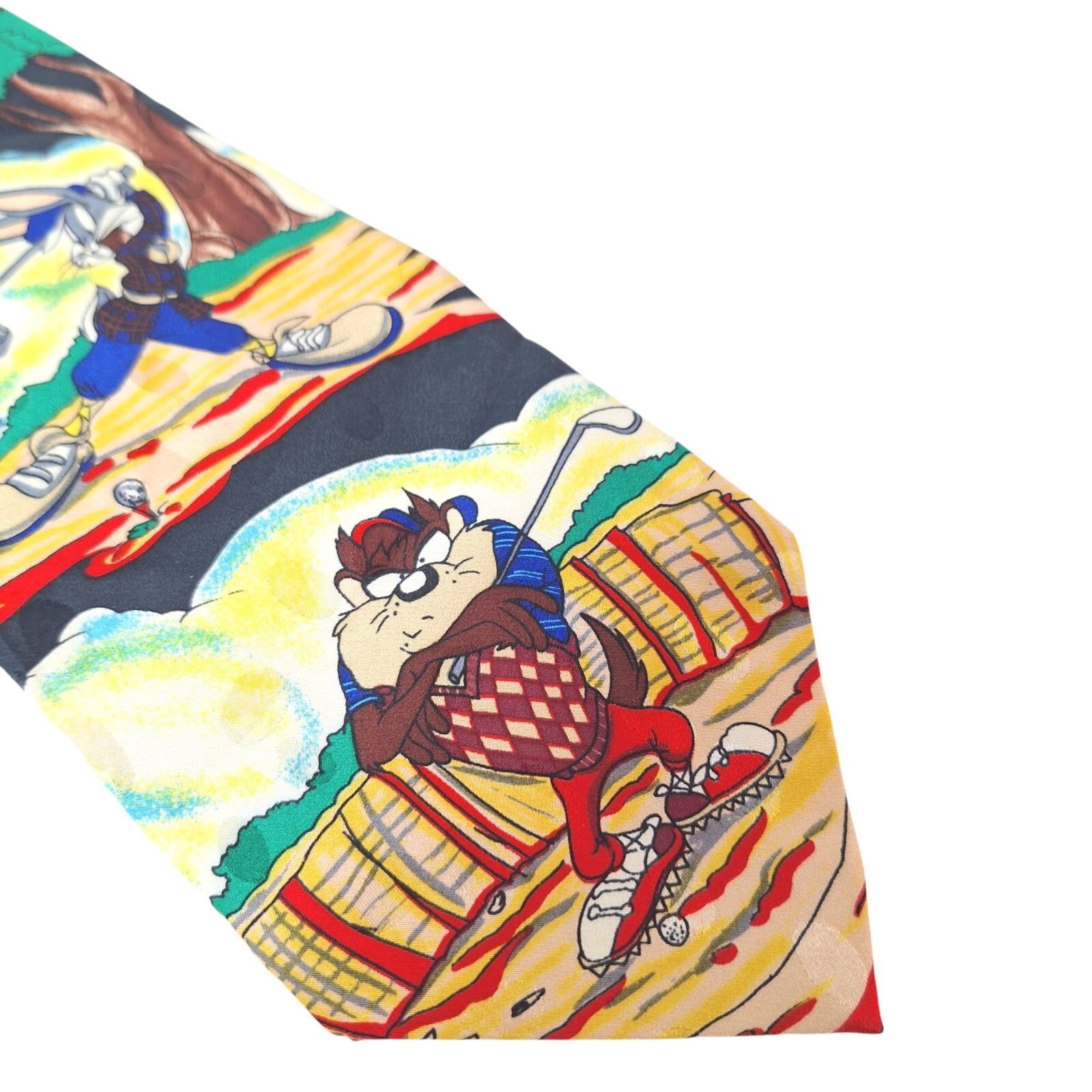 Vintage 1993 Looney Tunes Mania Golfing Bugs Bunny Taz Novelty Silk Necktie
