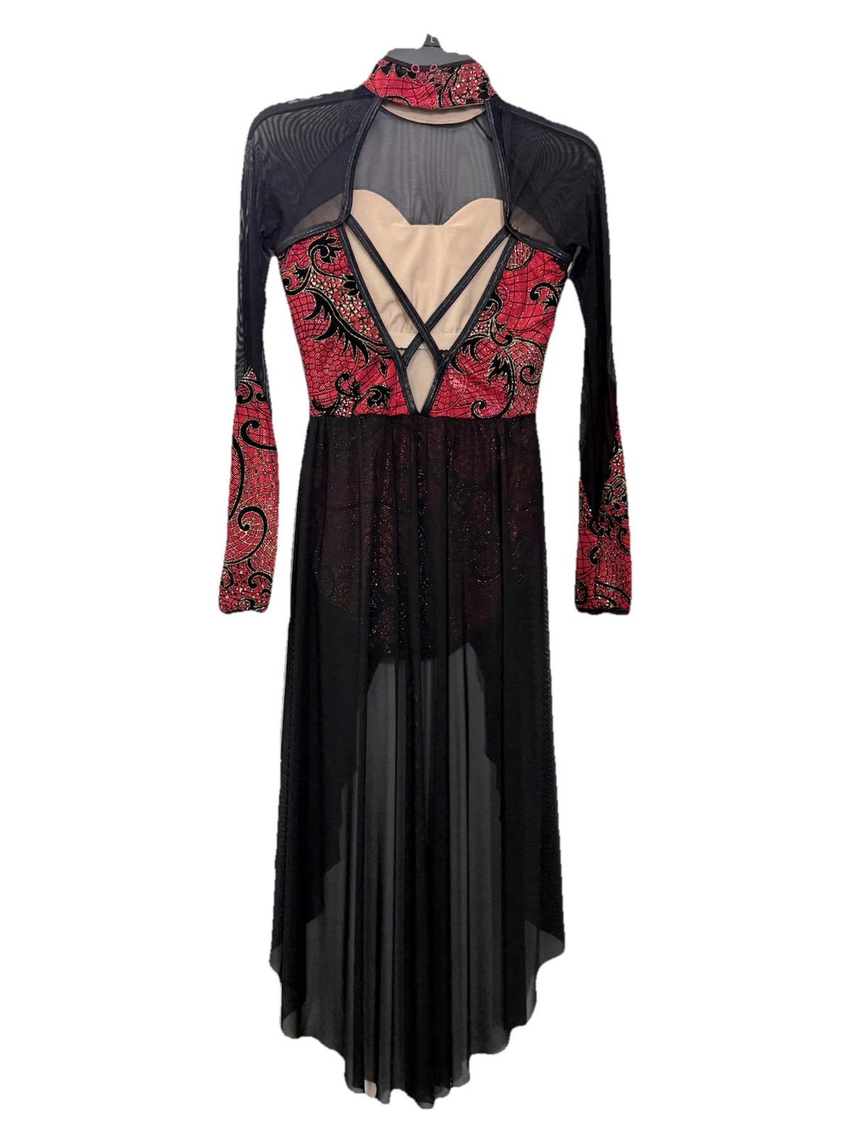 Weissman D10408 Sz S Red Metallic Flocked Mesh Long Sleeve Dance Leotard EUC