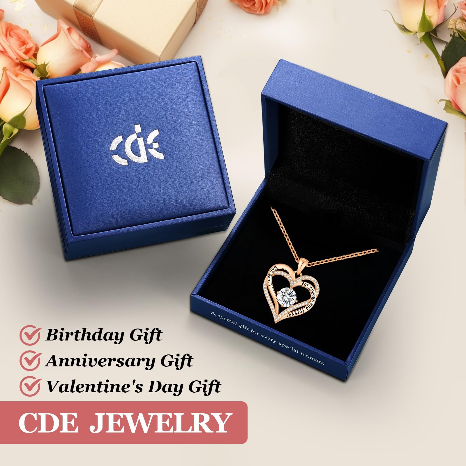 CDE Valentine's Day Gift Forever Love Heart One Size, Brass Rose Gold-04-Apr