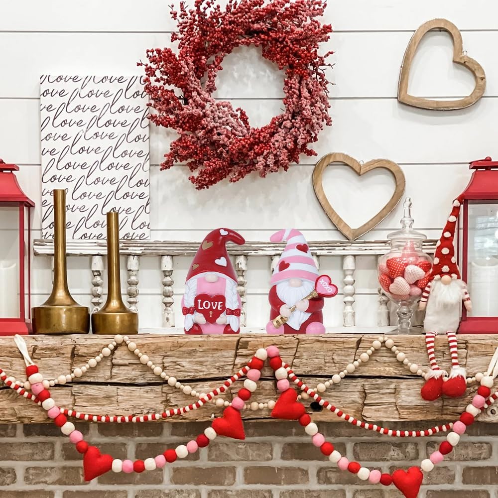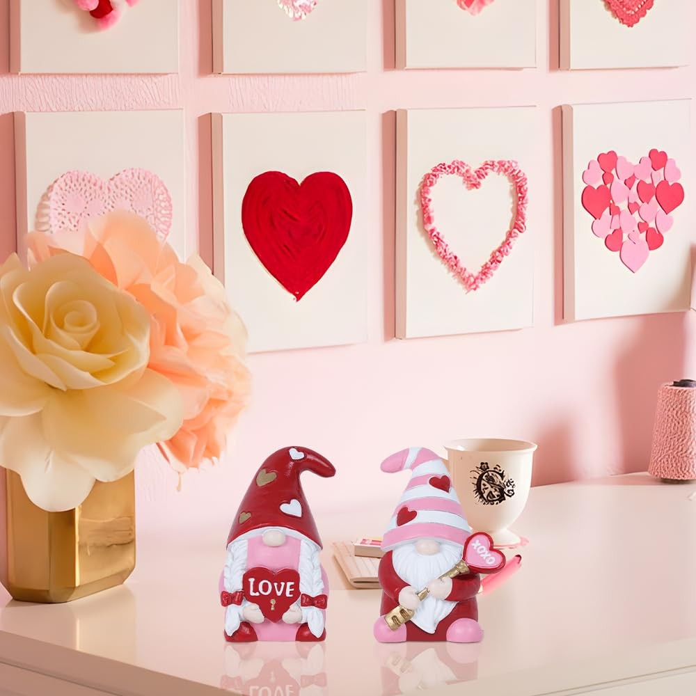 MEETYAMOR Valentines Day Decorations, 2 PCS Resin Gnomes Figurines Red, Pink