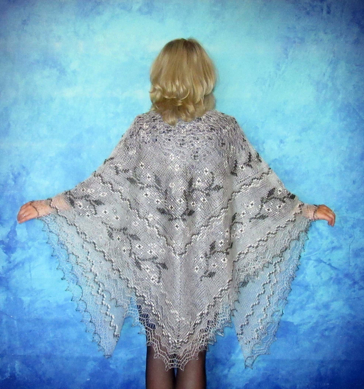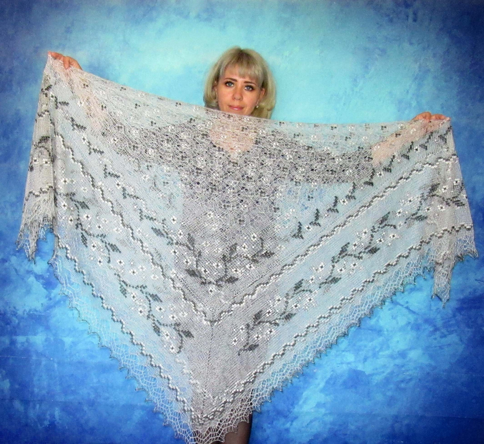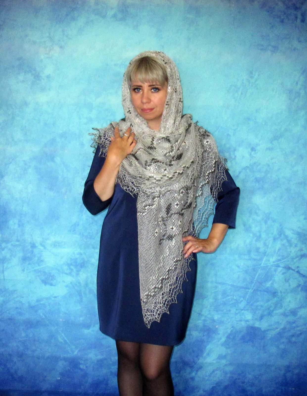 как выглядит Orenburger Knitted Scarf Ziegenflaum Scarf Pelerina Knit Hand Stole фото