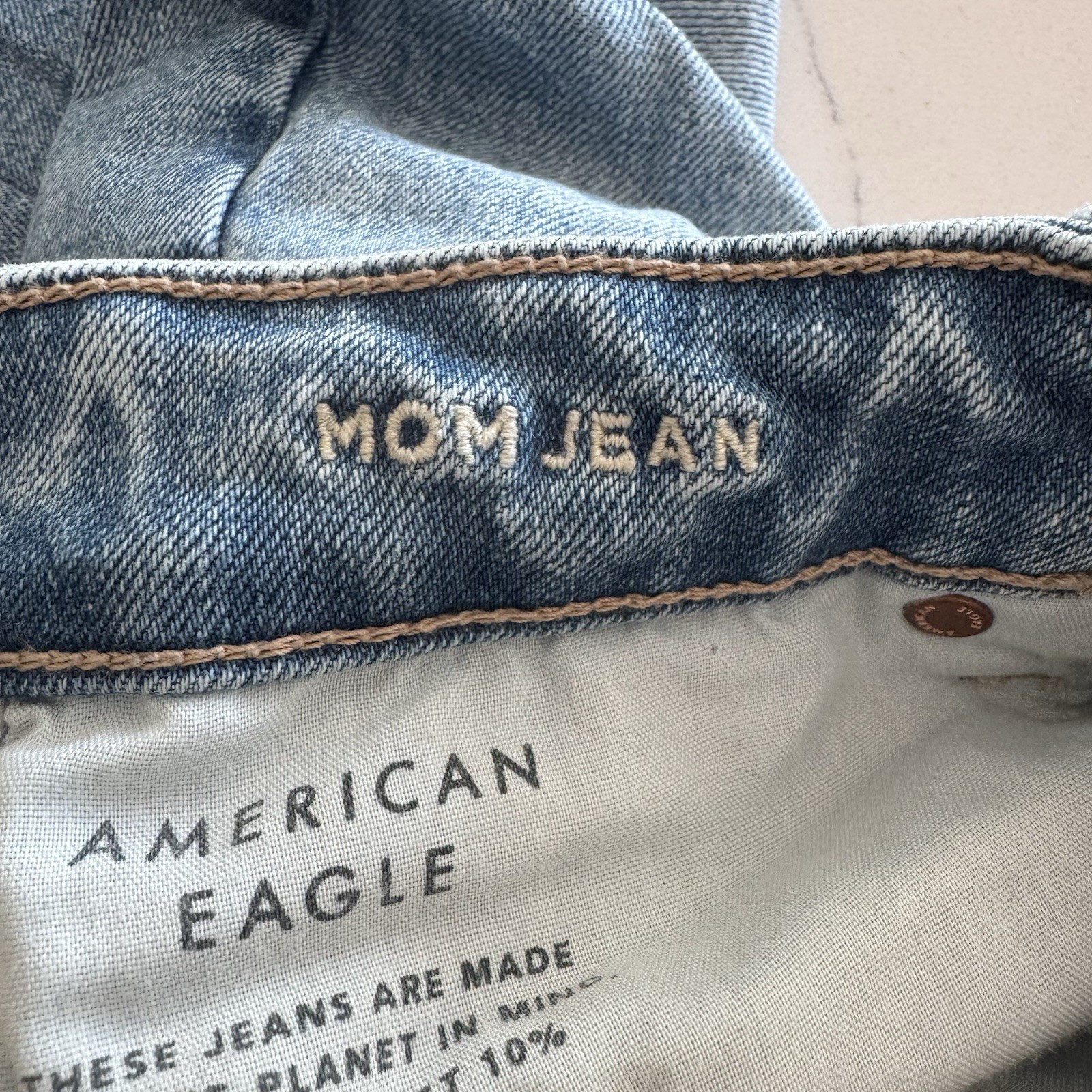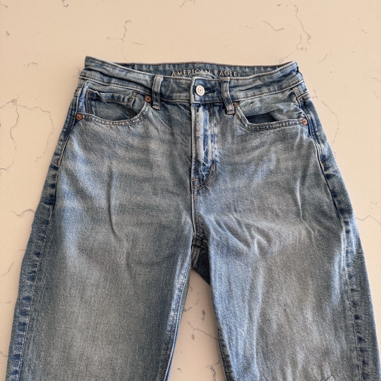 как выглядит American Eagle Distressed Mom Jean Women s Size 4 Short Medium Wash High Rise фото