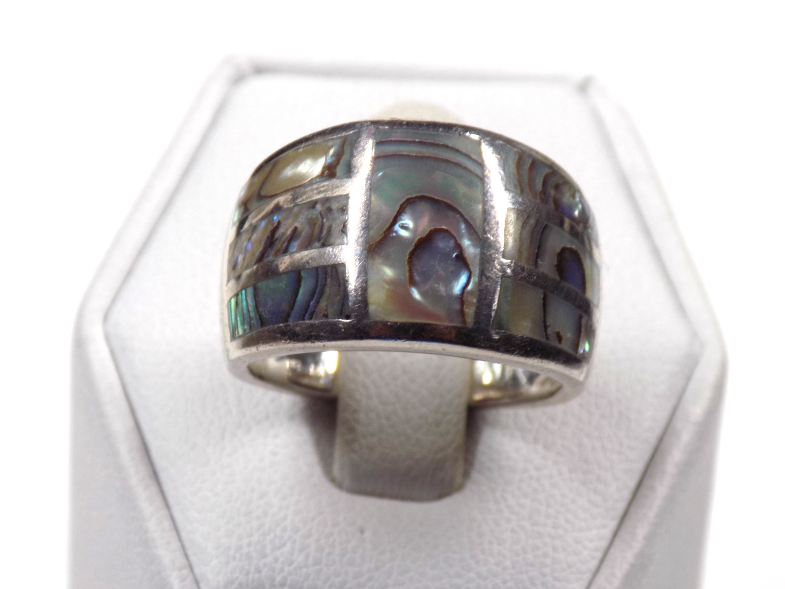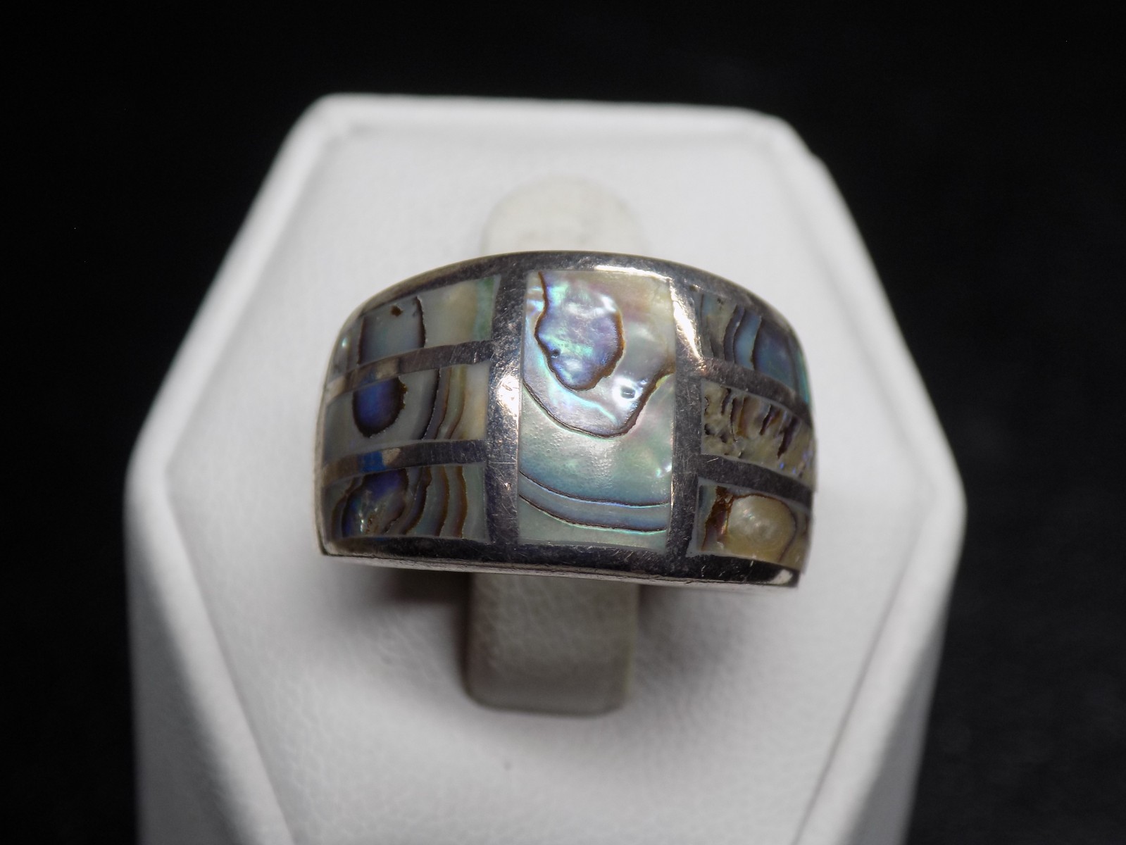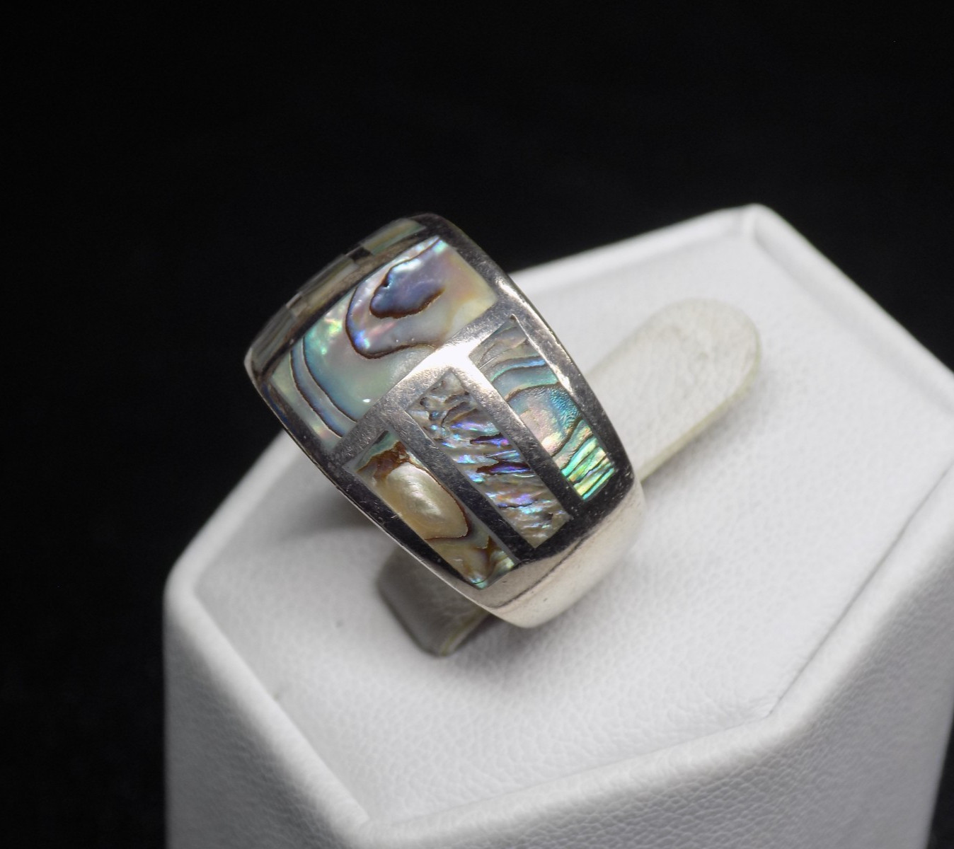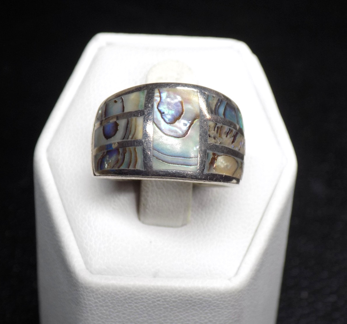 Vintage Inlaid Abalone Band Ring 925 Sterling Silver Signed 7.6 grams Size 7