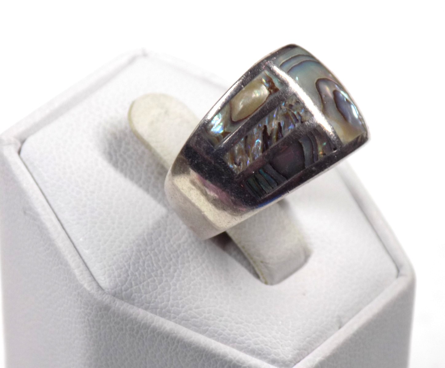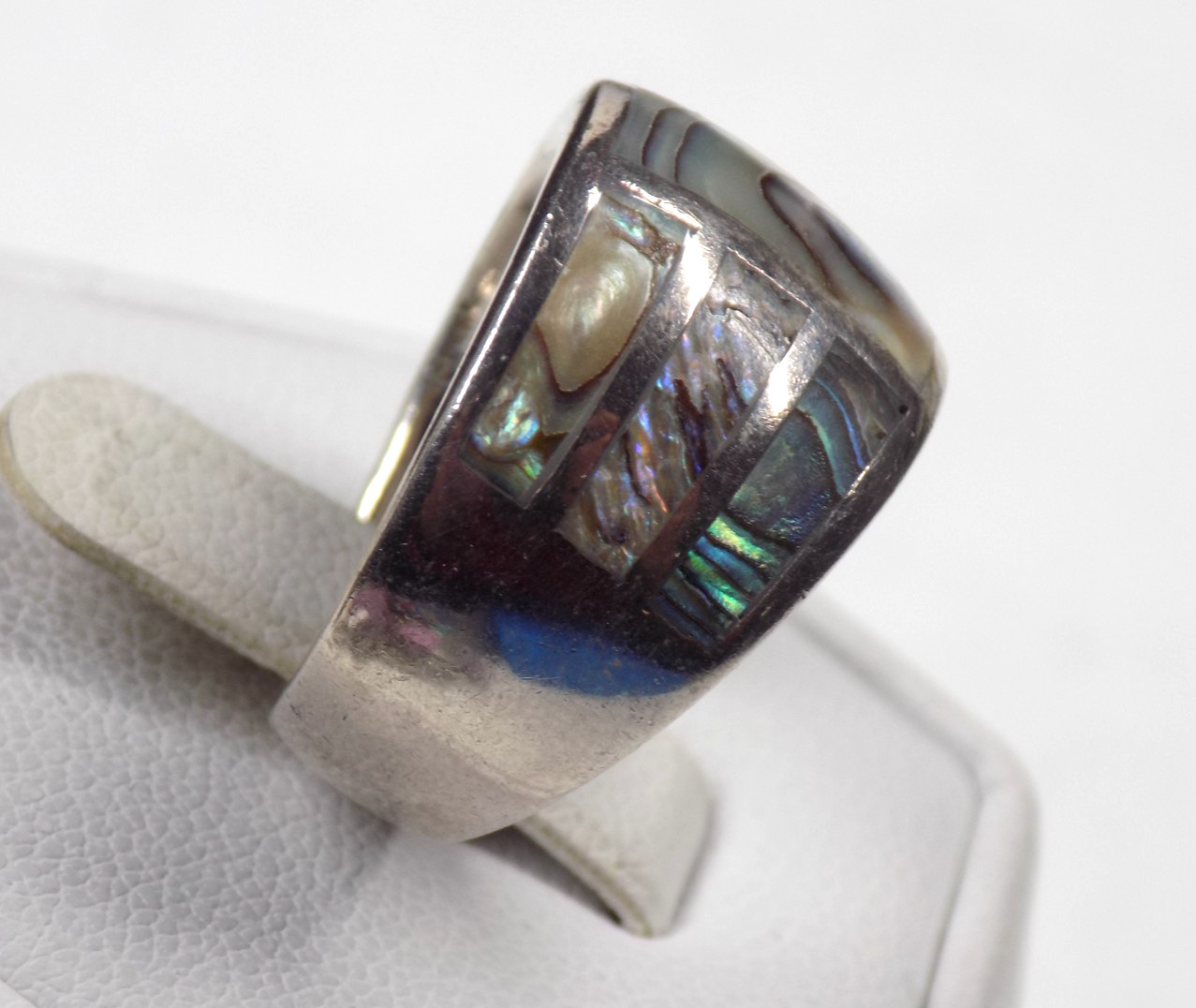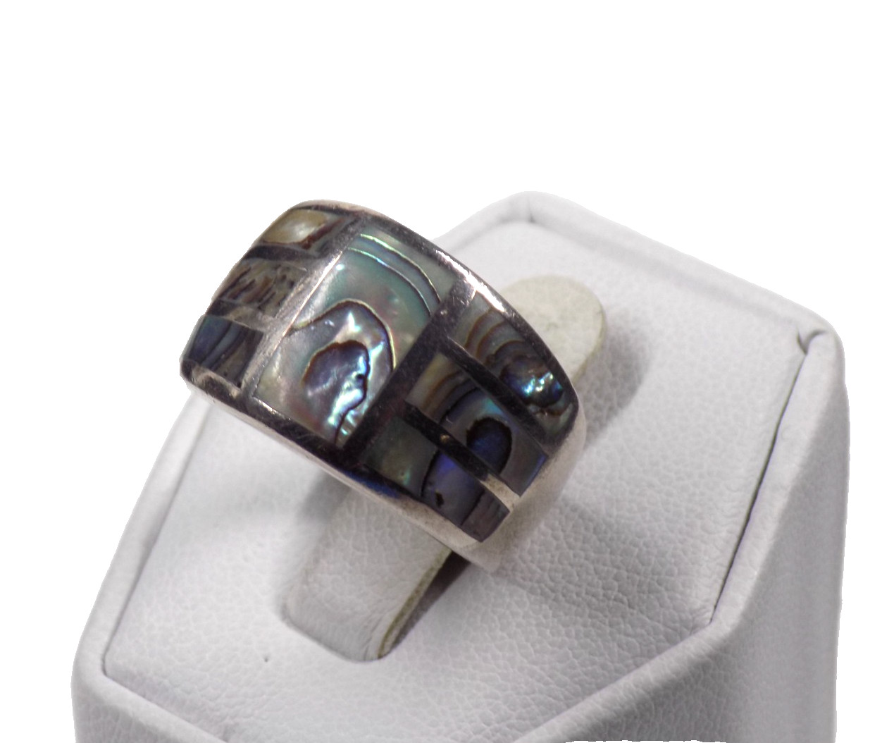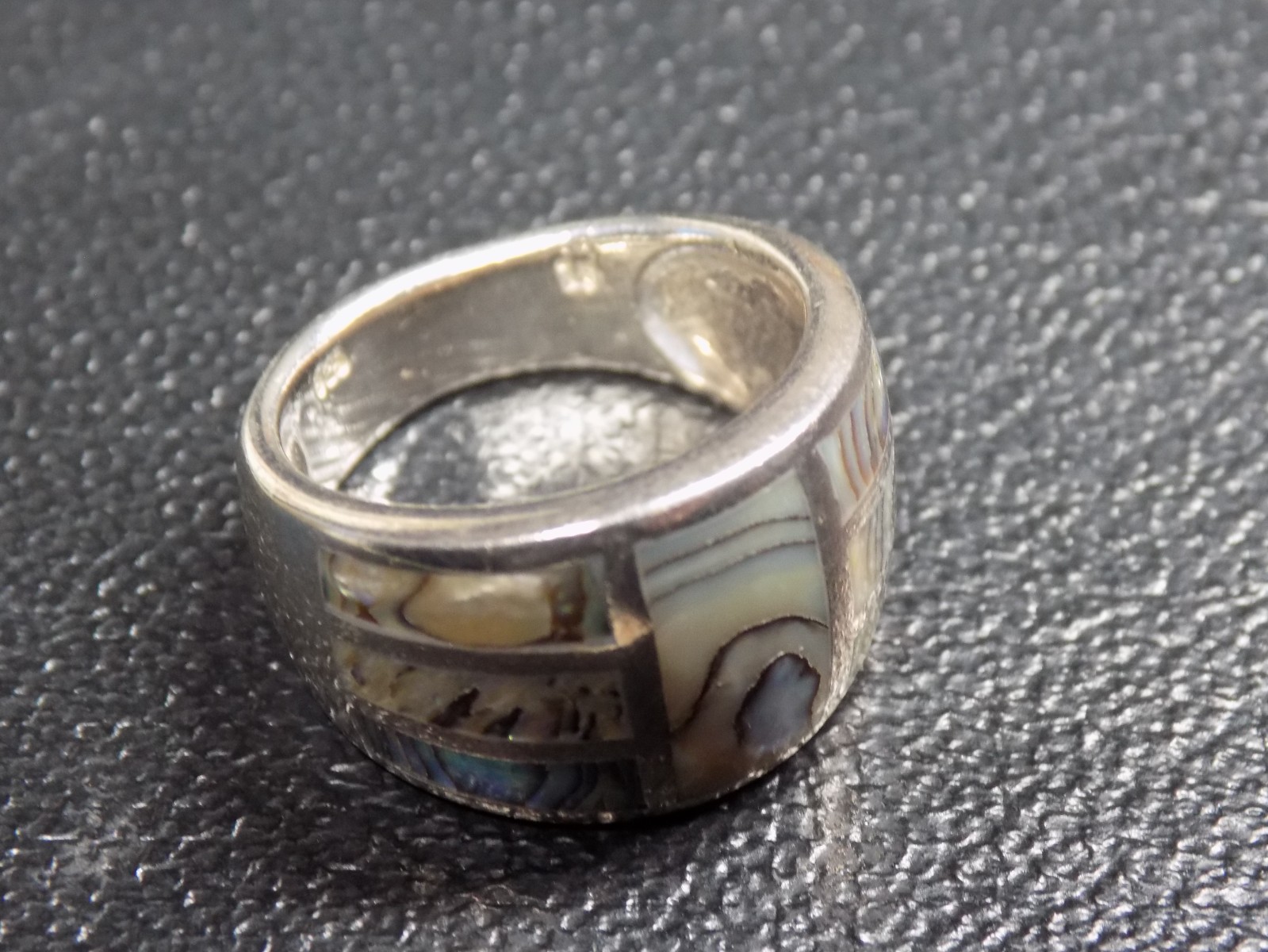 Vintage Inlaid Abalone Band Ring 925 Sterling Silver Signed 7.6 grams Size 7
