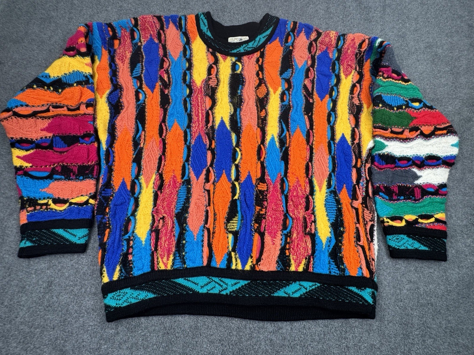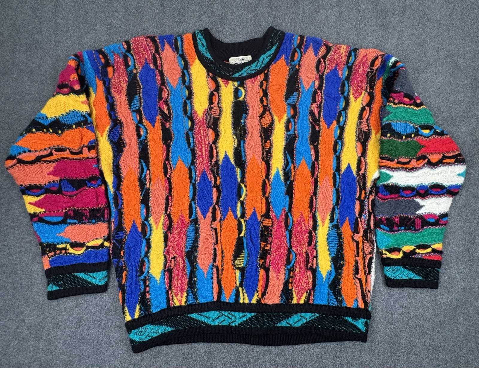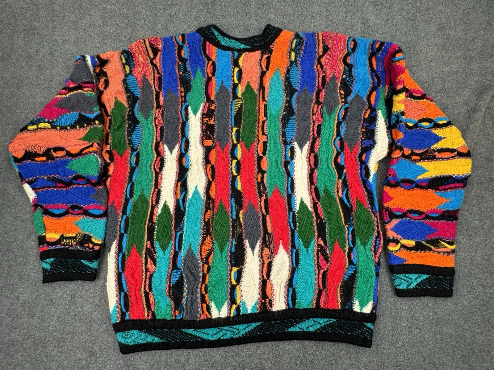 Vintage Coogi Cuggi 3D Knit Sweater Mens Medium Bright Colors Wool Australia