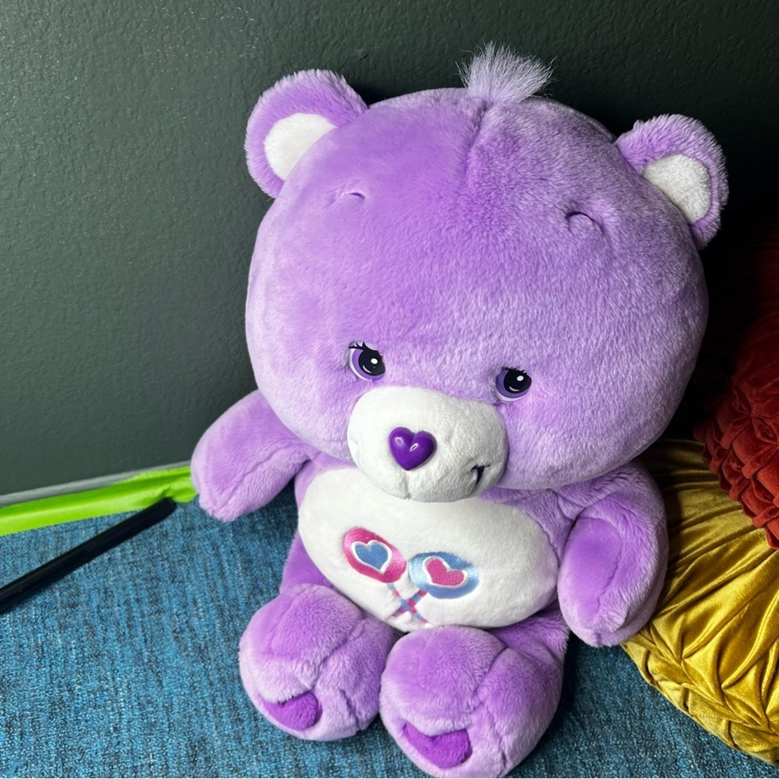 как выглядит Vintage 2002 Care Bear Share Teddy Bear Plush Stuffed Animal Large 25" Purple фото