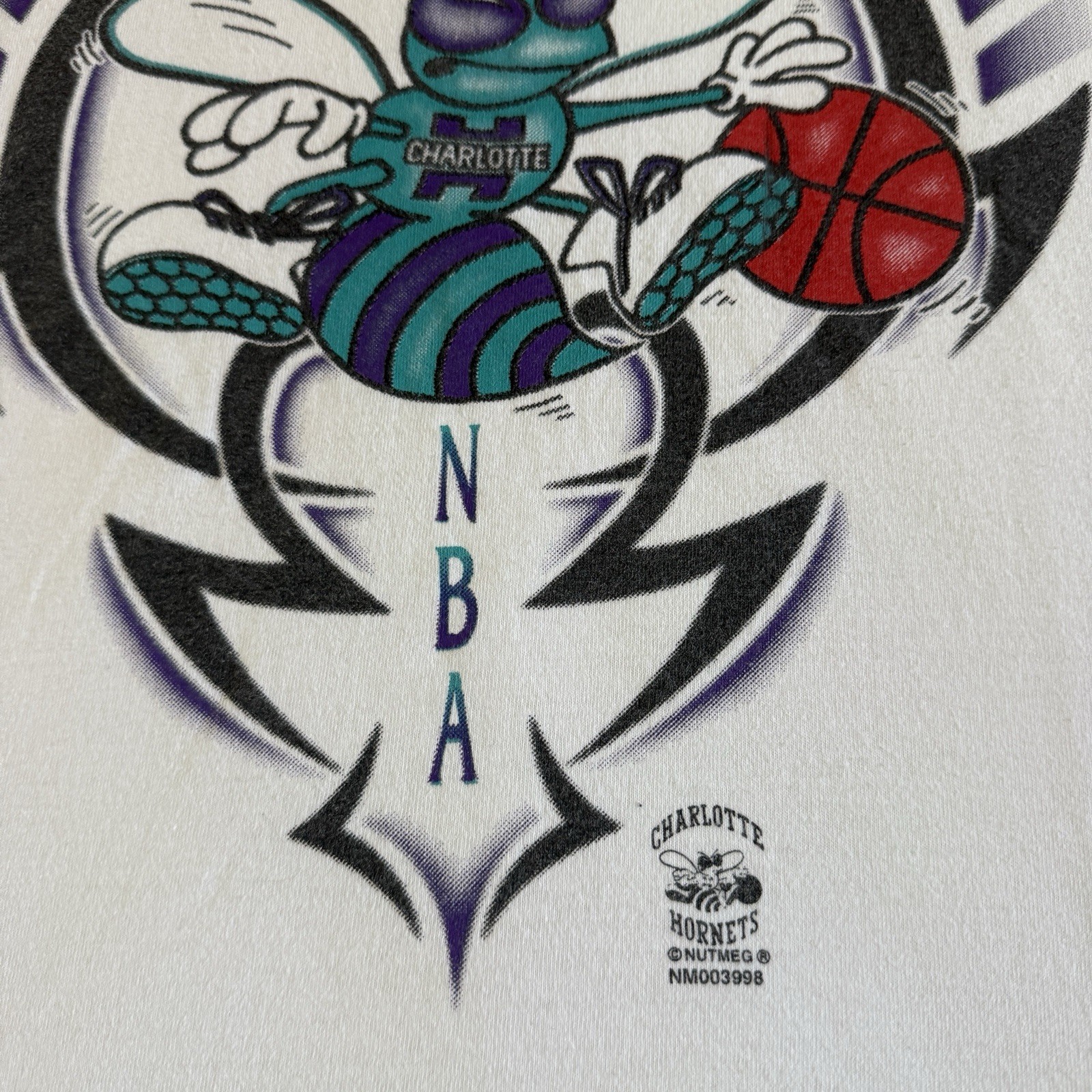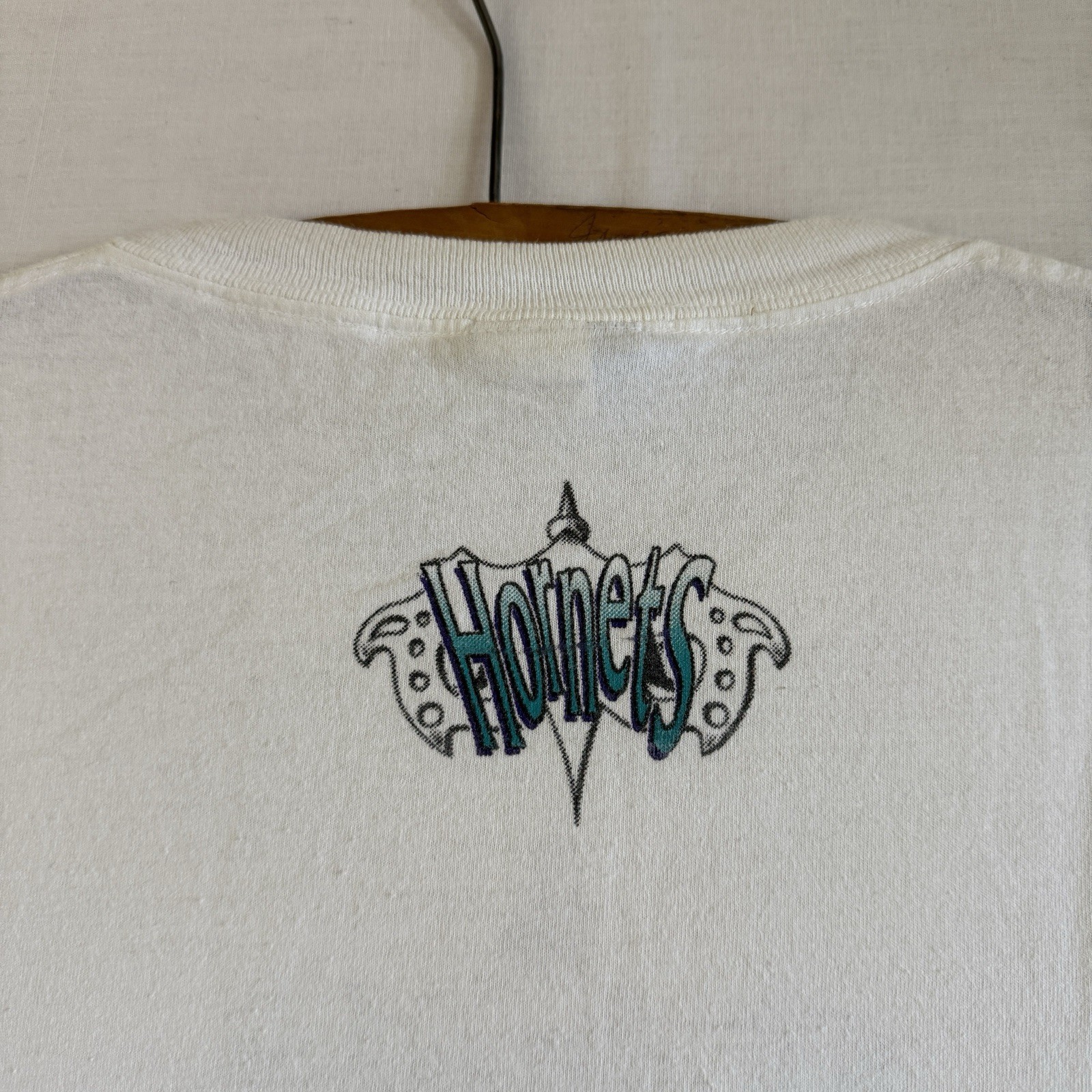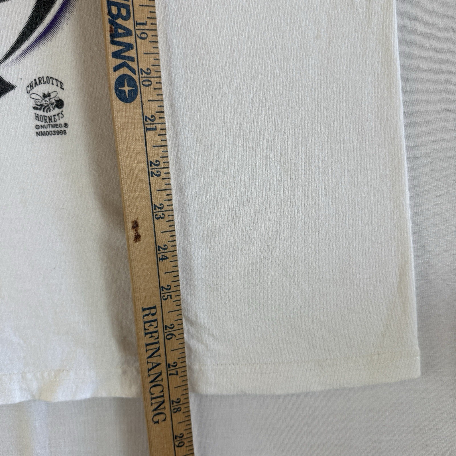 Vtg 90s Charlotte Hornets Double sided T Shirt M Nutmeg Tag Made In USA White