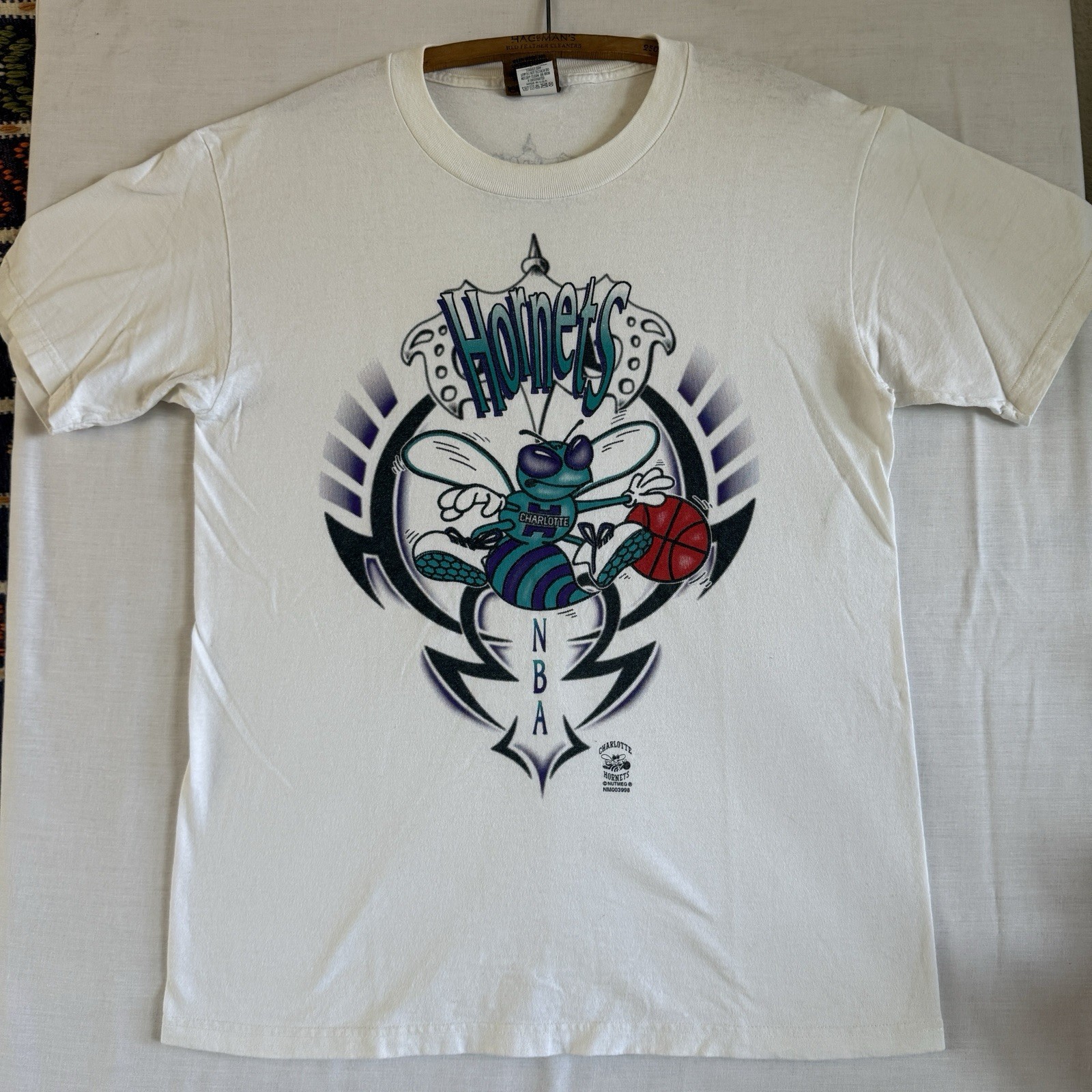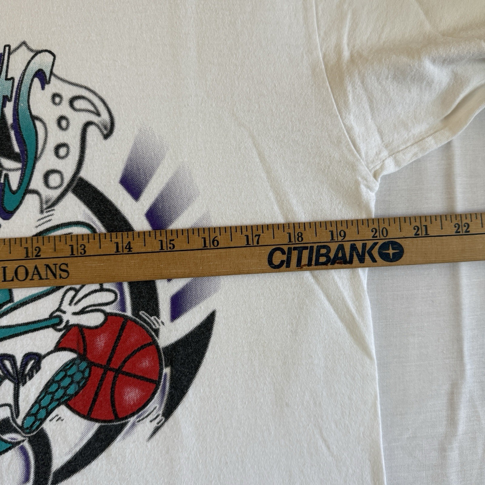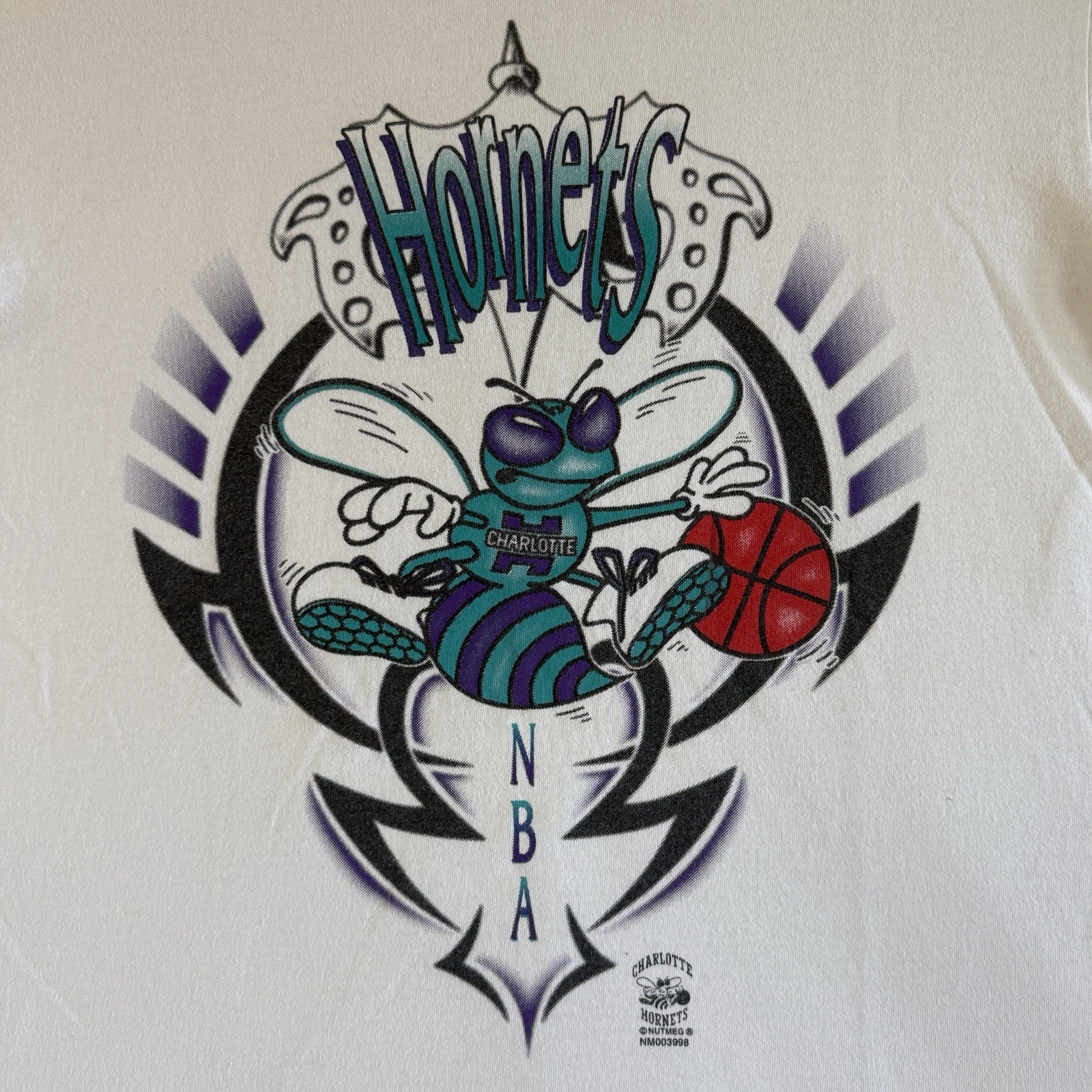 Vtg 90s Charlotte Hornets Double sided T Shirt M Nutmeg Tag Made In USA White