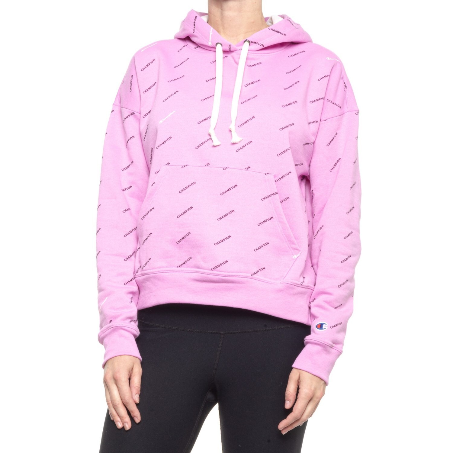 как выглядит Champion NEW Womens Powerblend Hoodie All Over Print Relaxed Fit Small 65 фото