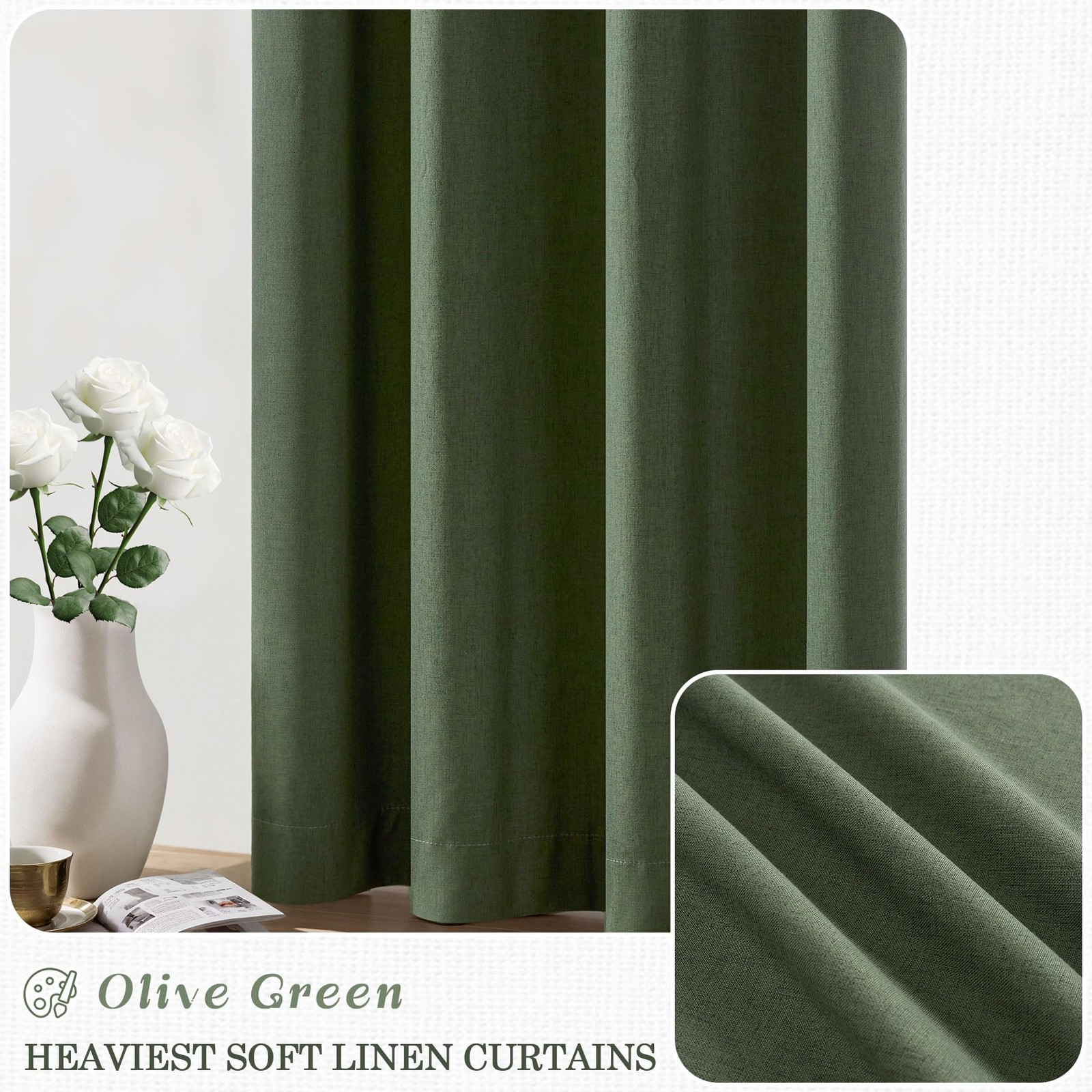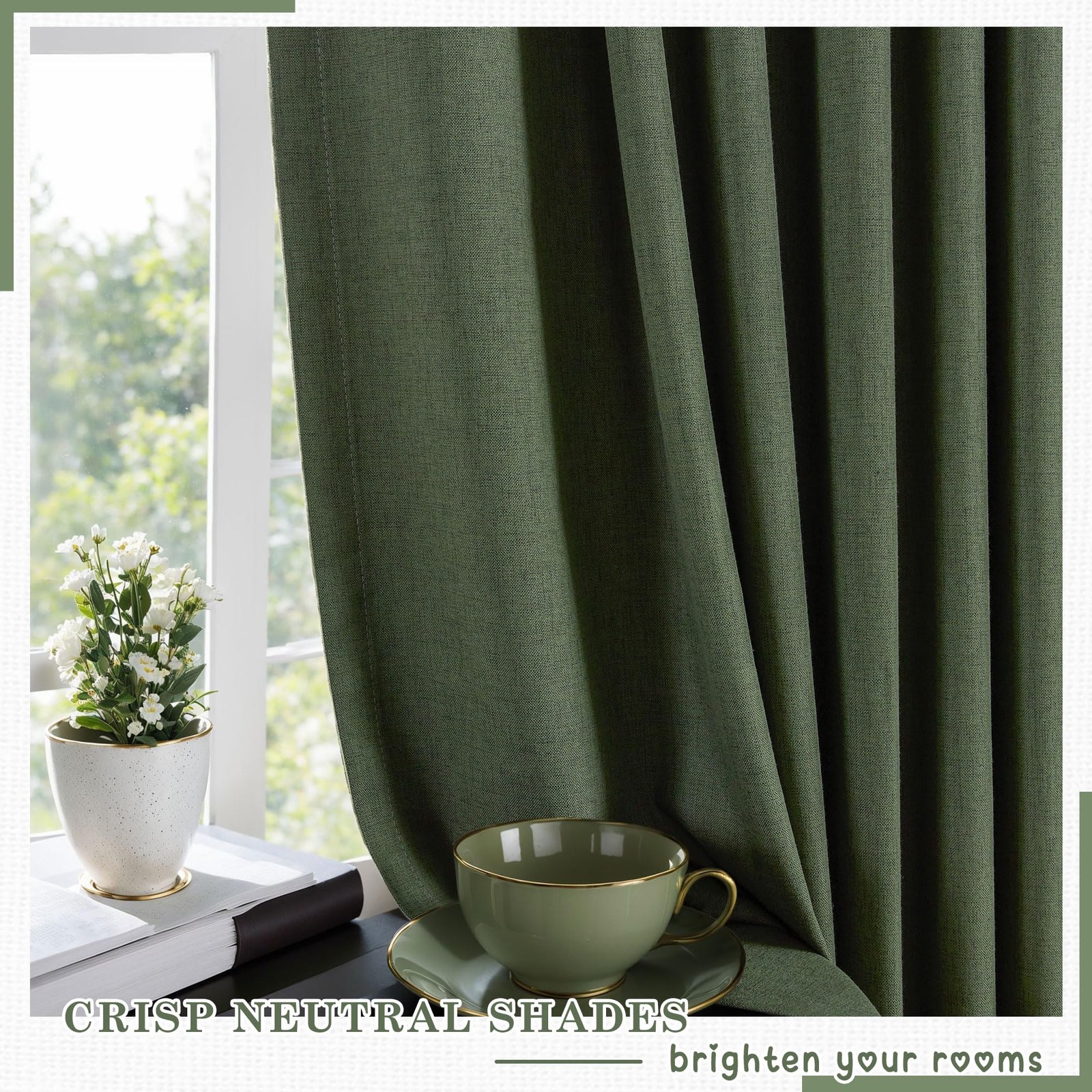 как выглядит Olive Green Blackout Curtains for Living Room 63 Inch Long 2 Panels Set Back ... фото