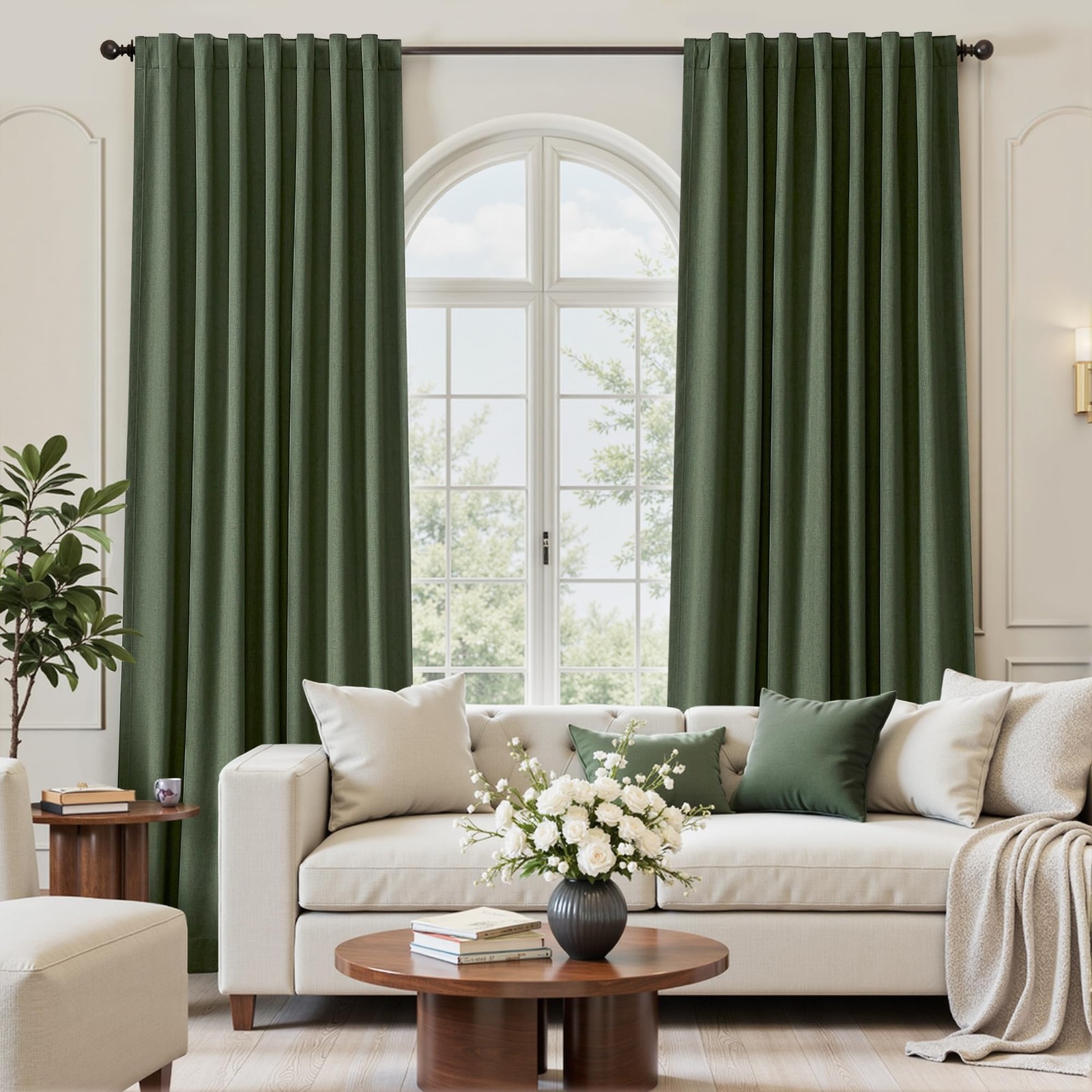 Olive Green Blackout Curtains for Living Room 63 Inch Long 2 Panels Set Back ...