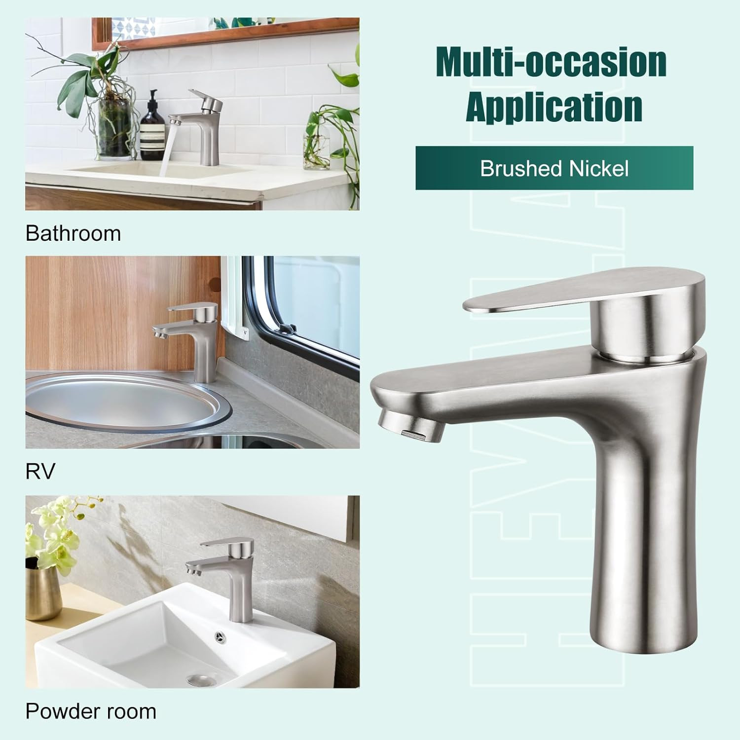 Bathroom Faucet Single Handle 1 Hole SUS304 Stainless Steel Deck Mount Lavatory