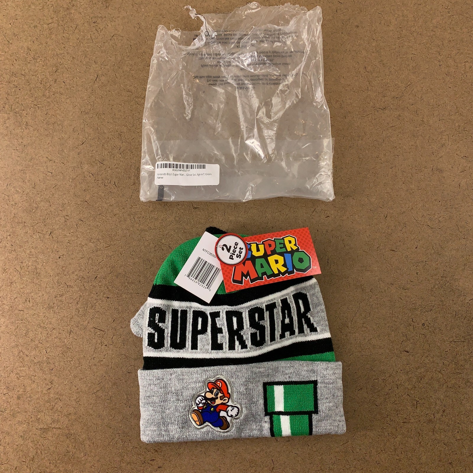 Super Mario Boys Size 4-7 Green Beanie Hat Glove Set NWT