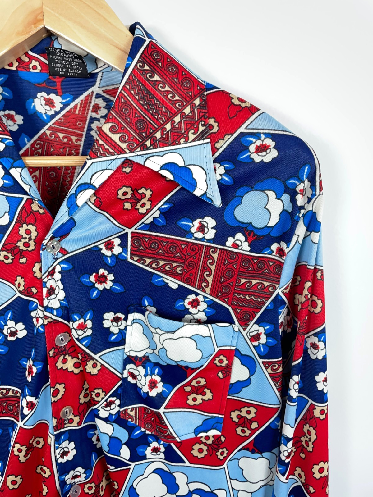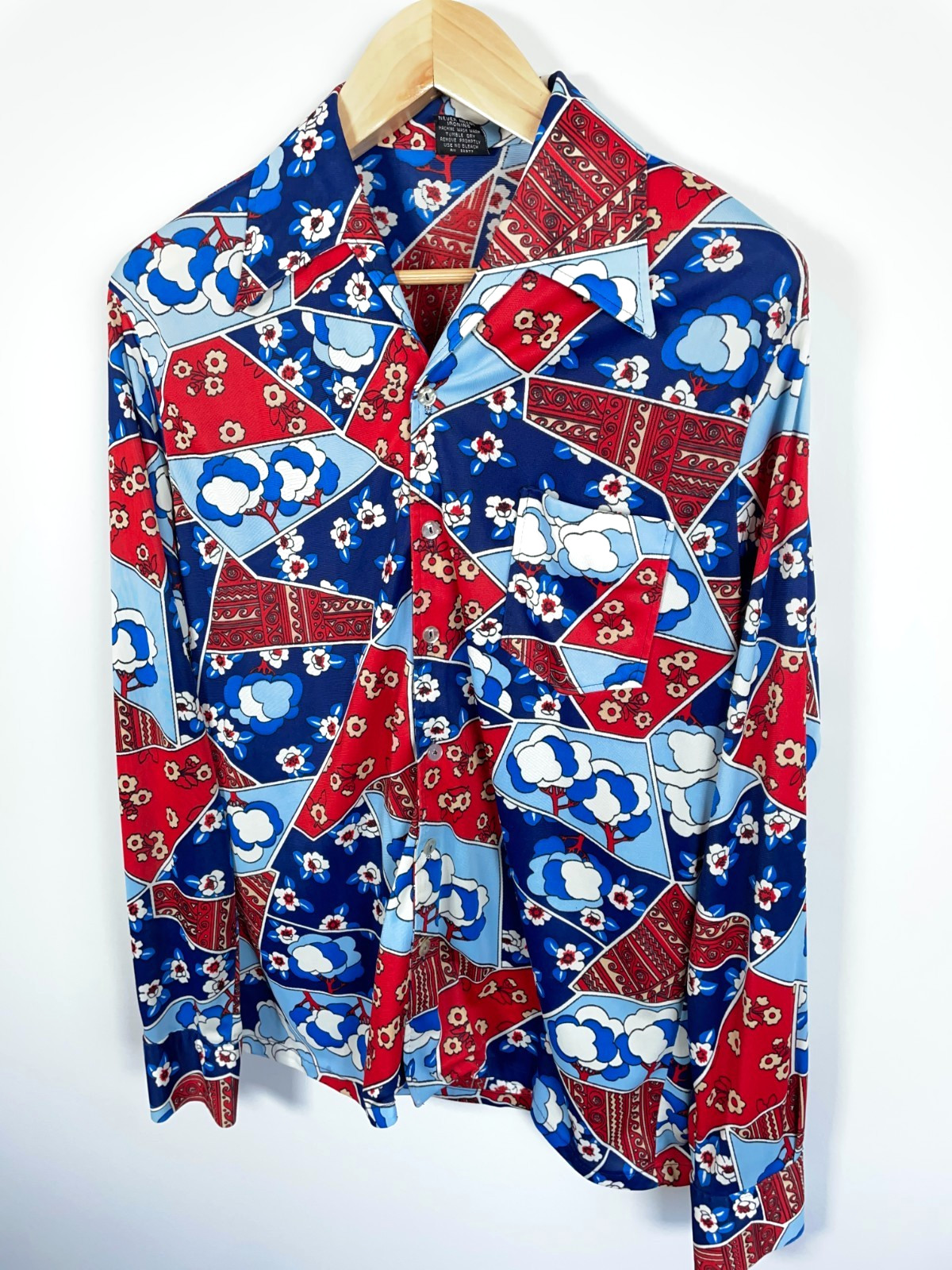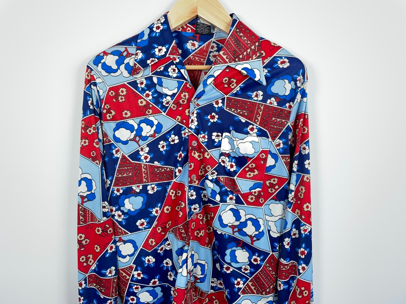 как выглядит Joel of California Shirt Mens Large Red Blue Abstract Geometric Disco 70s фото