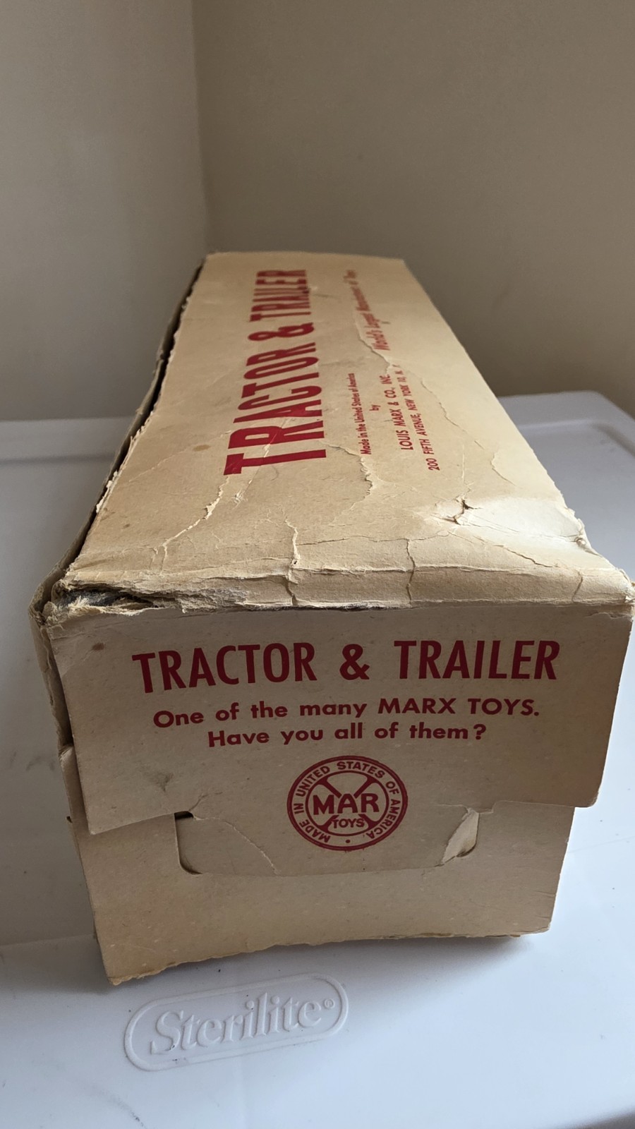 как выглядит Marx Climbing Tractor With Box, Plow Front And Rear, trailer, Wind Up Works фото