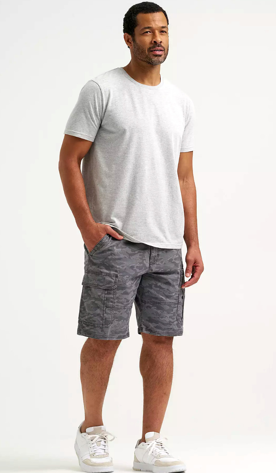 как выглядит Wrangler Relaxed Fit 10 in Cargo Shorts w Stretch Camo Magnet Men