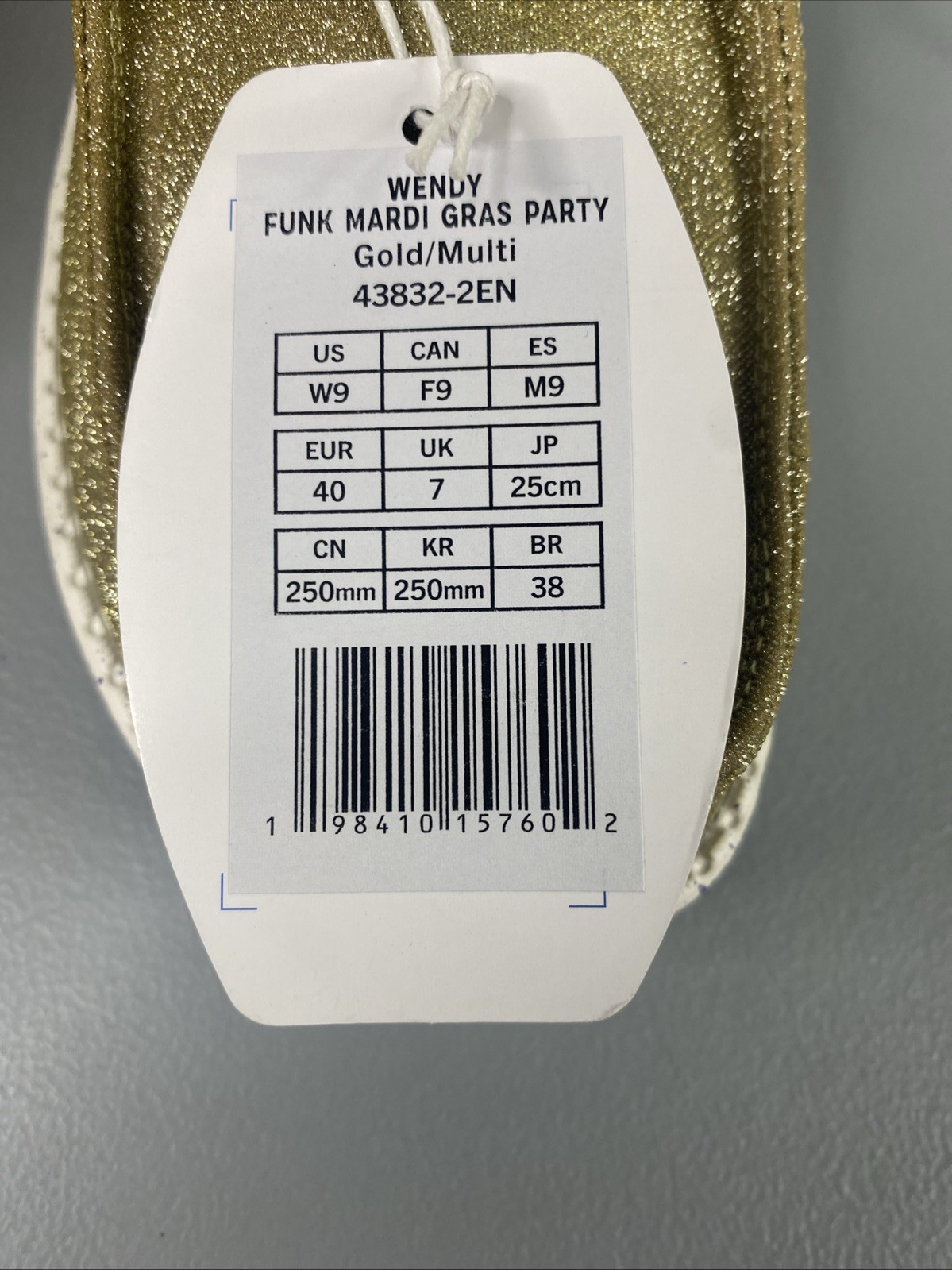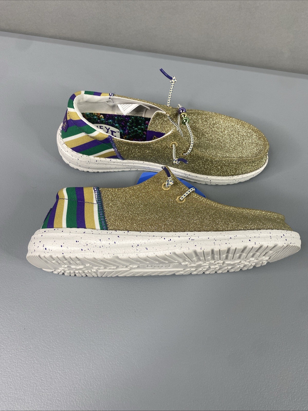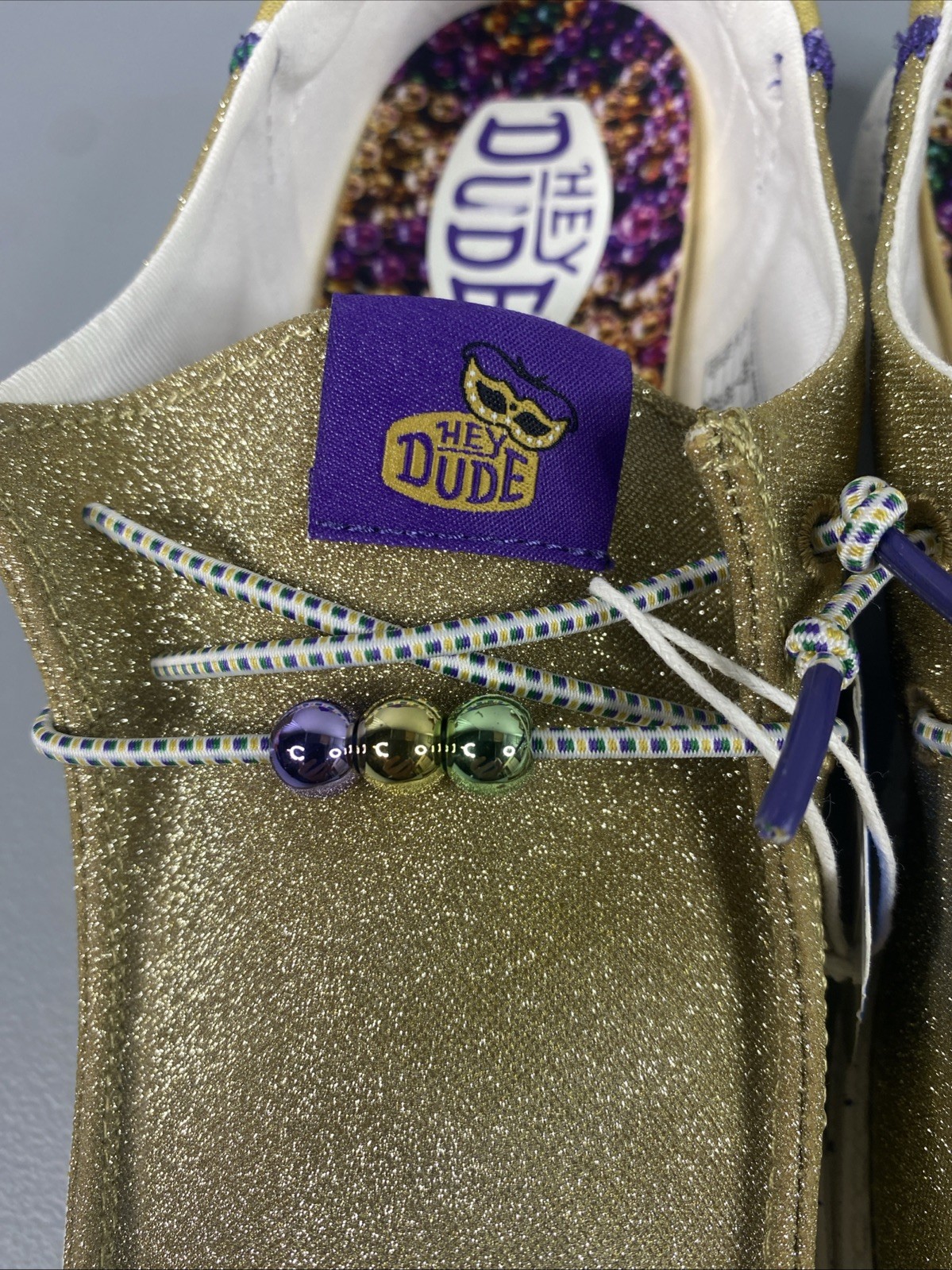 Hey Dude Wendy Funk Mardi Gras Party Gold Sparkle Slip On Casual Shoes Womens 9