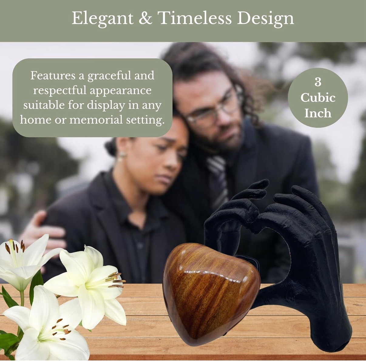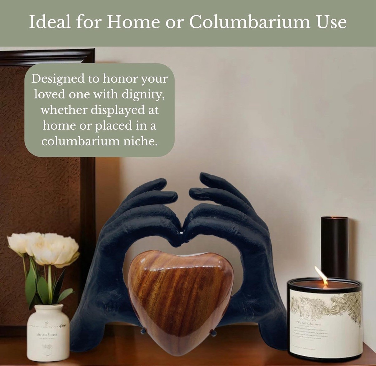 • Small/Keepsake Dark Wood Heart Brass Funeral Cremation Urn for Ashes