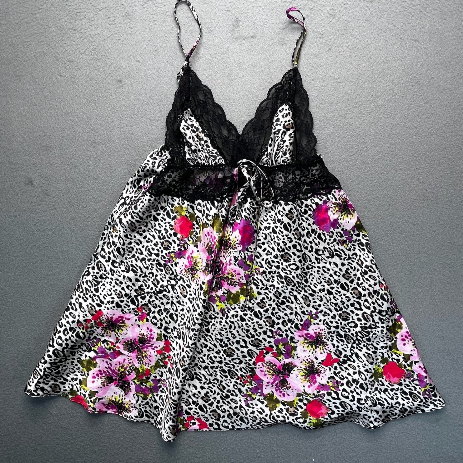 как выглядит Victorias Secret babydoll Slip Chemise Animal Floral Print Black Lace Trim S P фото