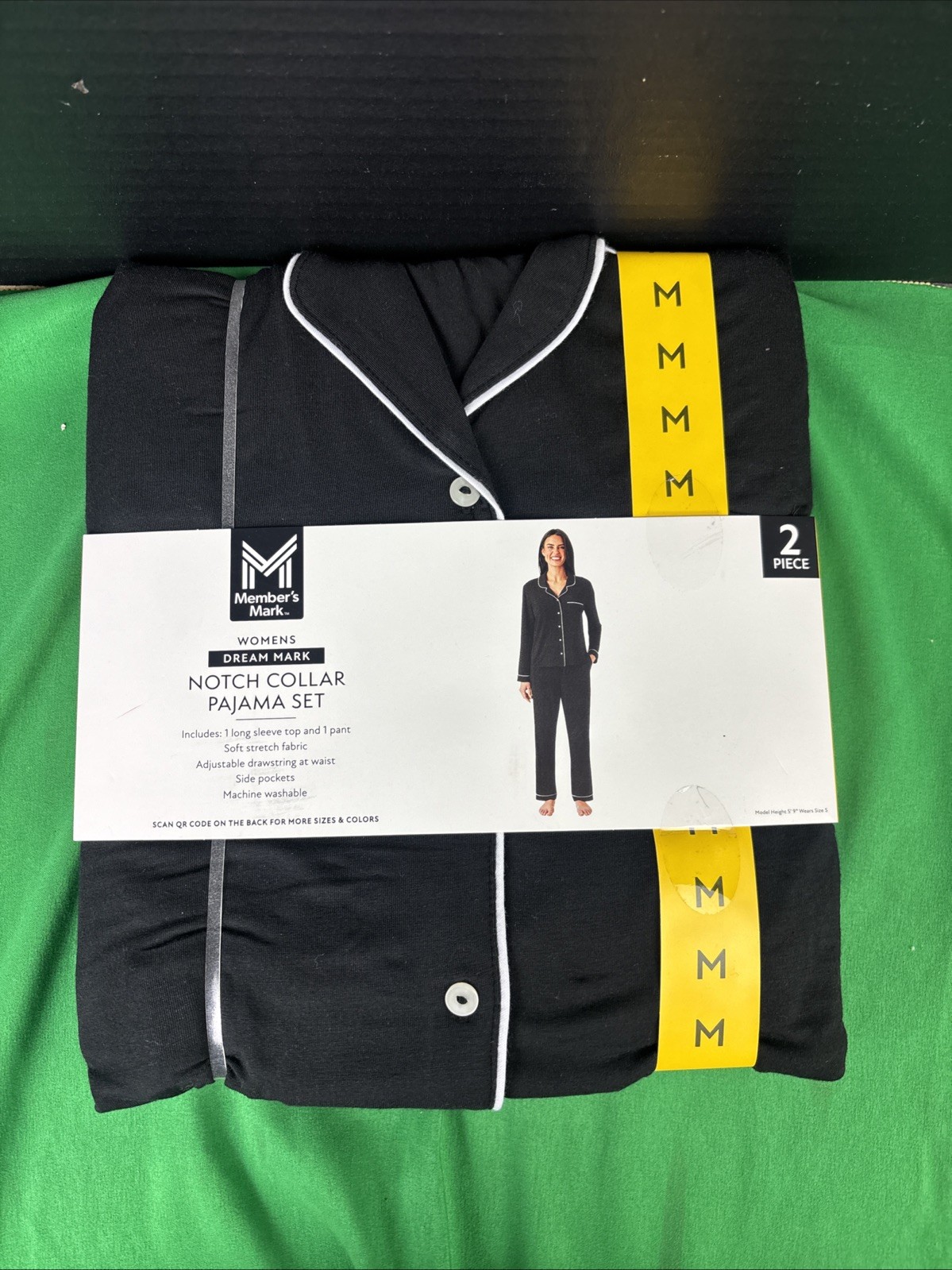 Member's Mark DreamMark Women's 2-Piece Notch Collar Pajama Set Size M Black