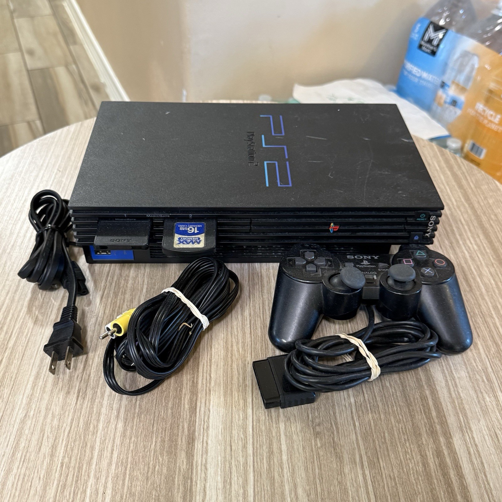 как выглядит Sony PlayStation 2 PS2 SCPH-39001 Fat Console W/ Memory Cards Cables Controller фото