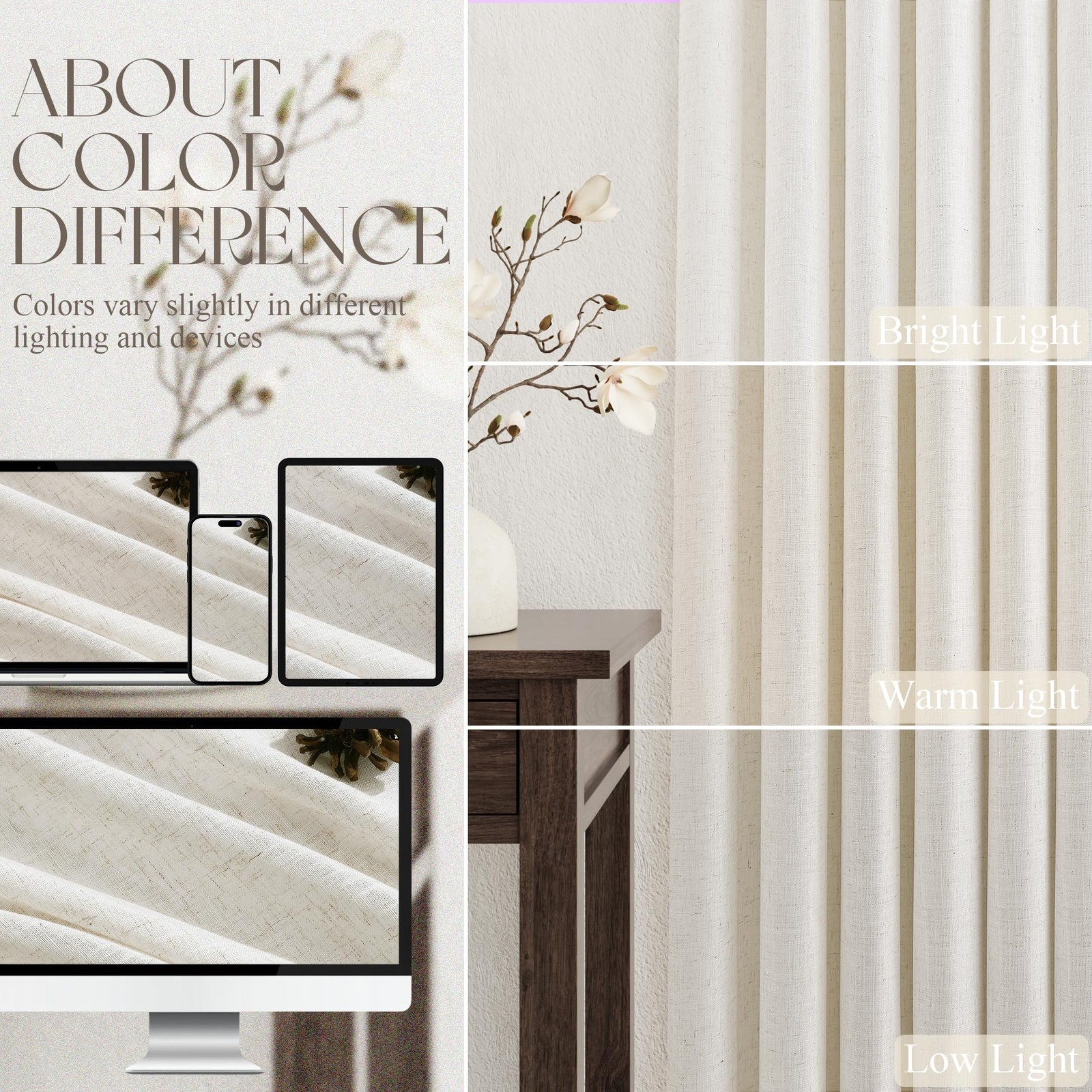 как выглядит Jowels Natural Cream Linen Curtains 90 Inch Length 2 Panels for Living Room B... фото