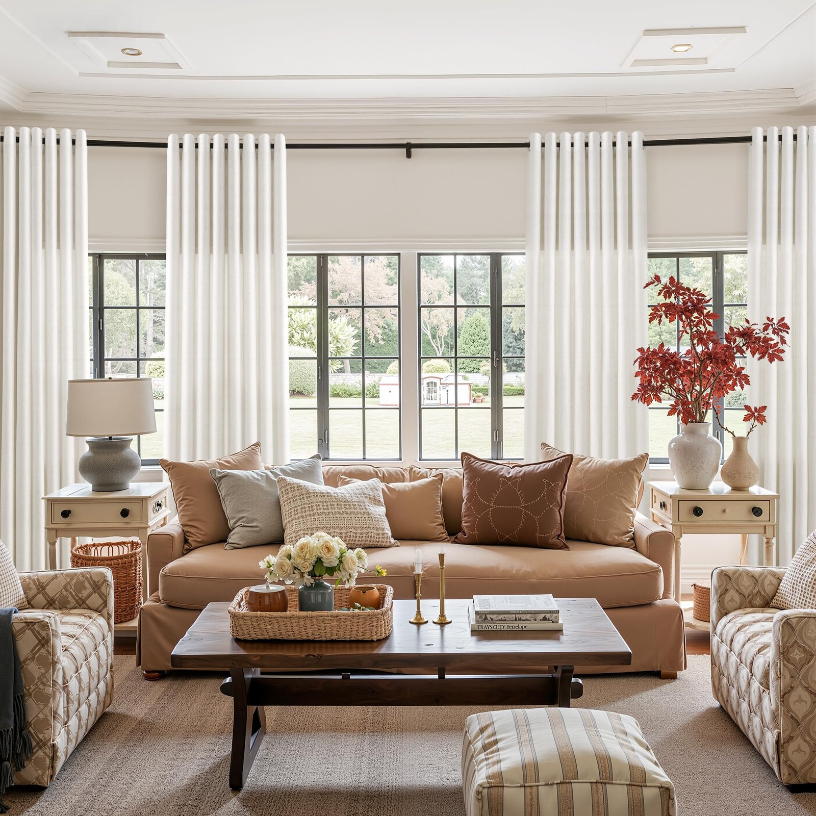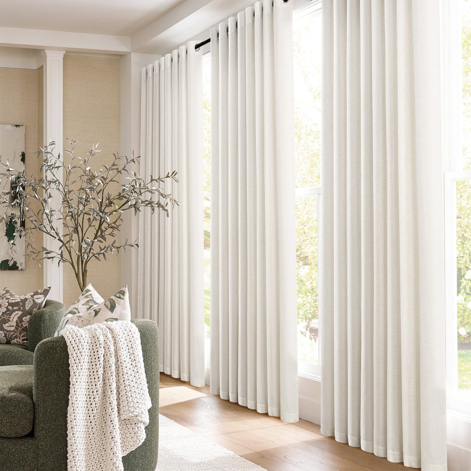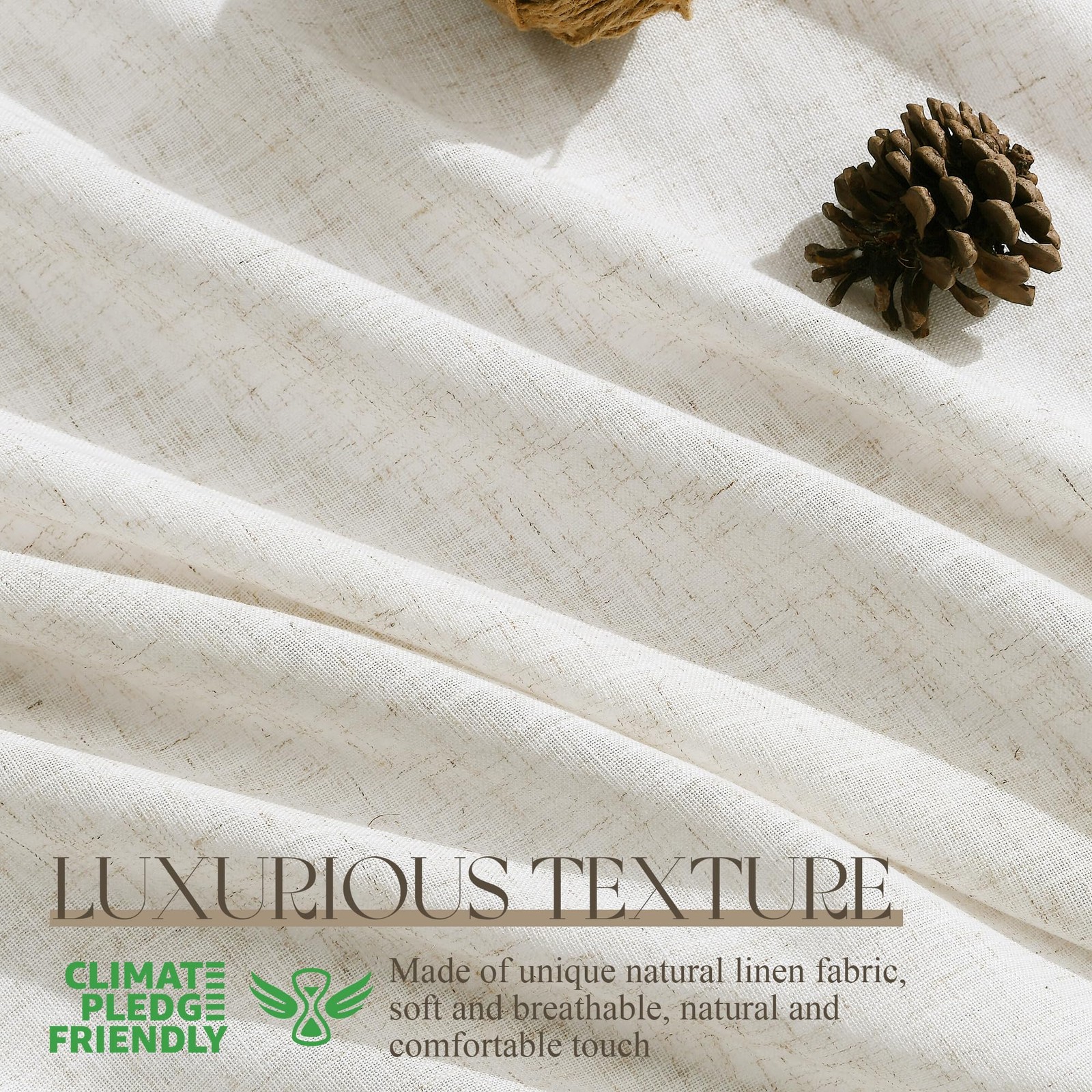 Jowels Natural Cream Linen Curtains 90 Inch Length 2 Panels for Living Room B...