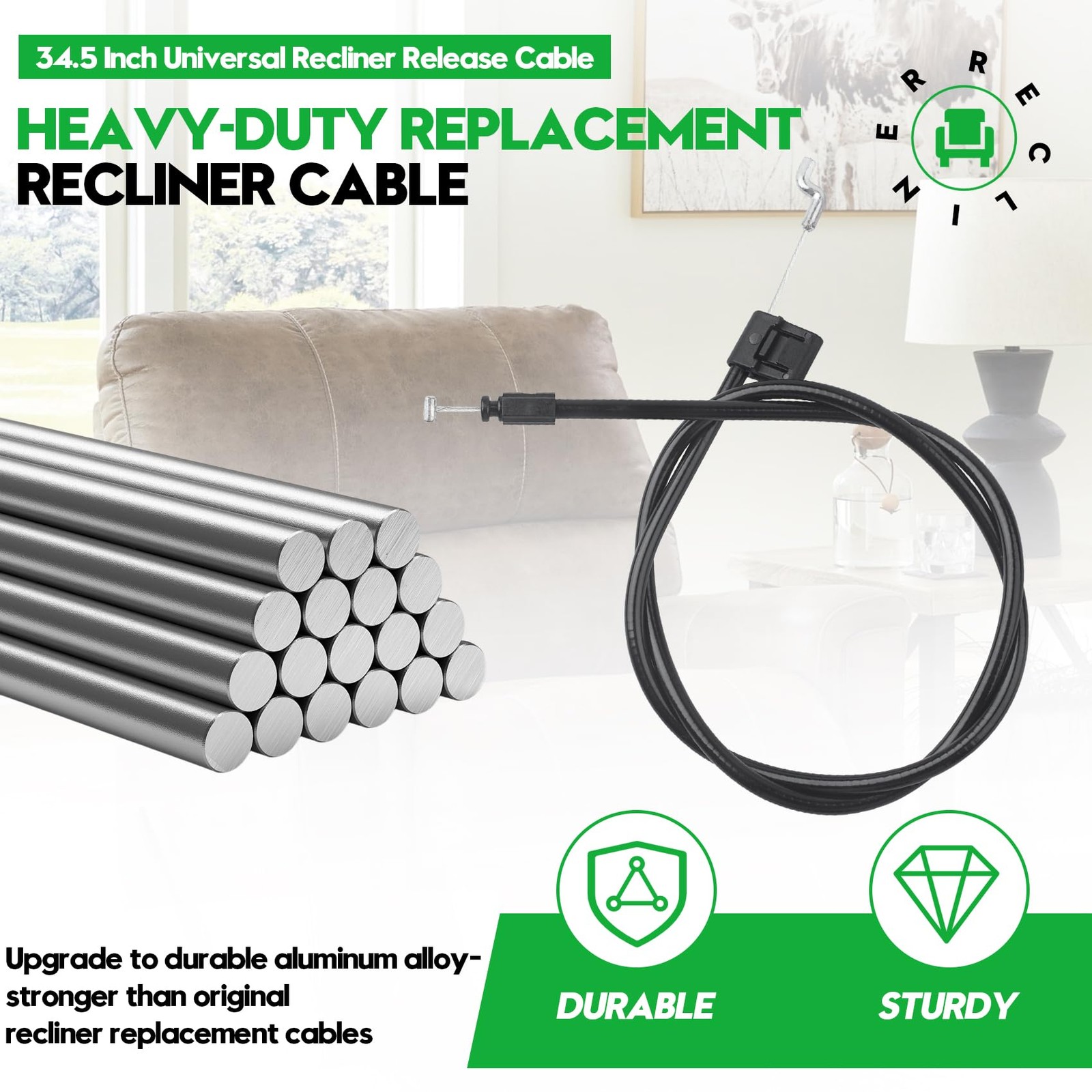Included Components: 34.5 Inch Universal Recliner Release Cable