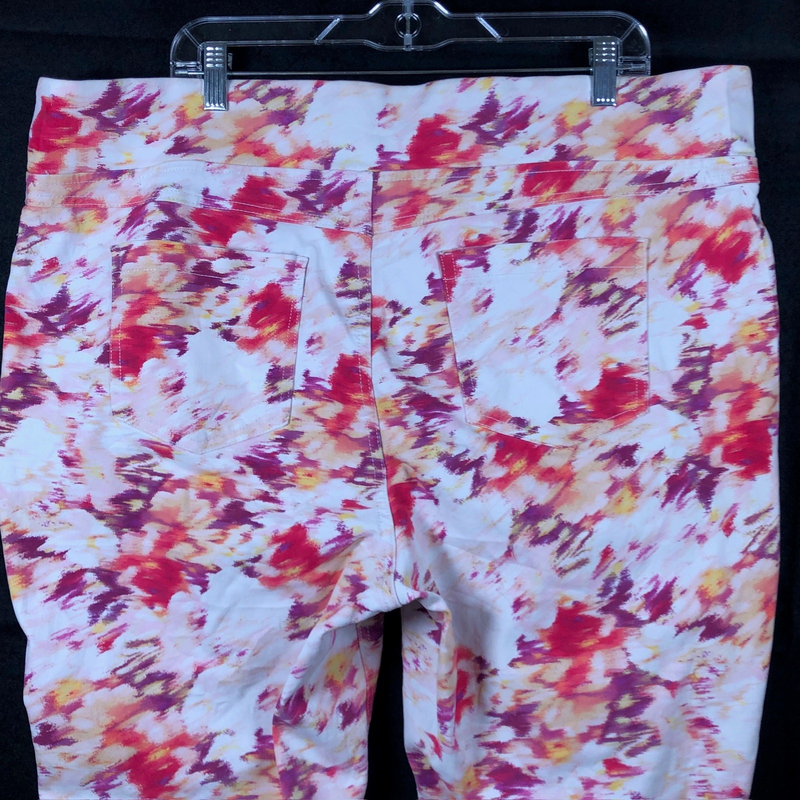 Terra Sky Womens Pants White Multi Pull On Elastic Waist Ankle Stretch 2X