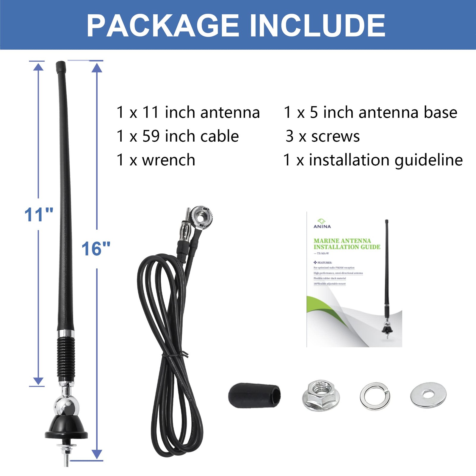 16 Inch Marine Radio Antenna for Pickup Truck Boat ATV UTV RV Motorcycle Trac...