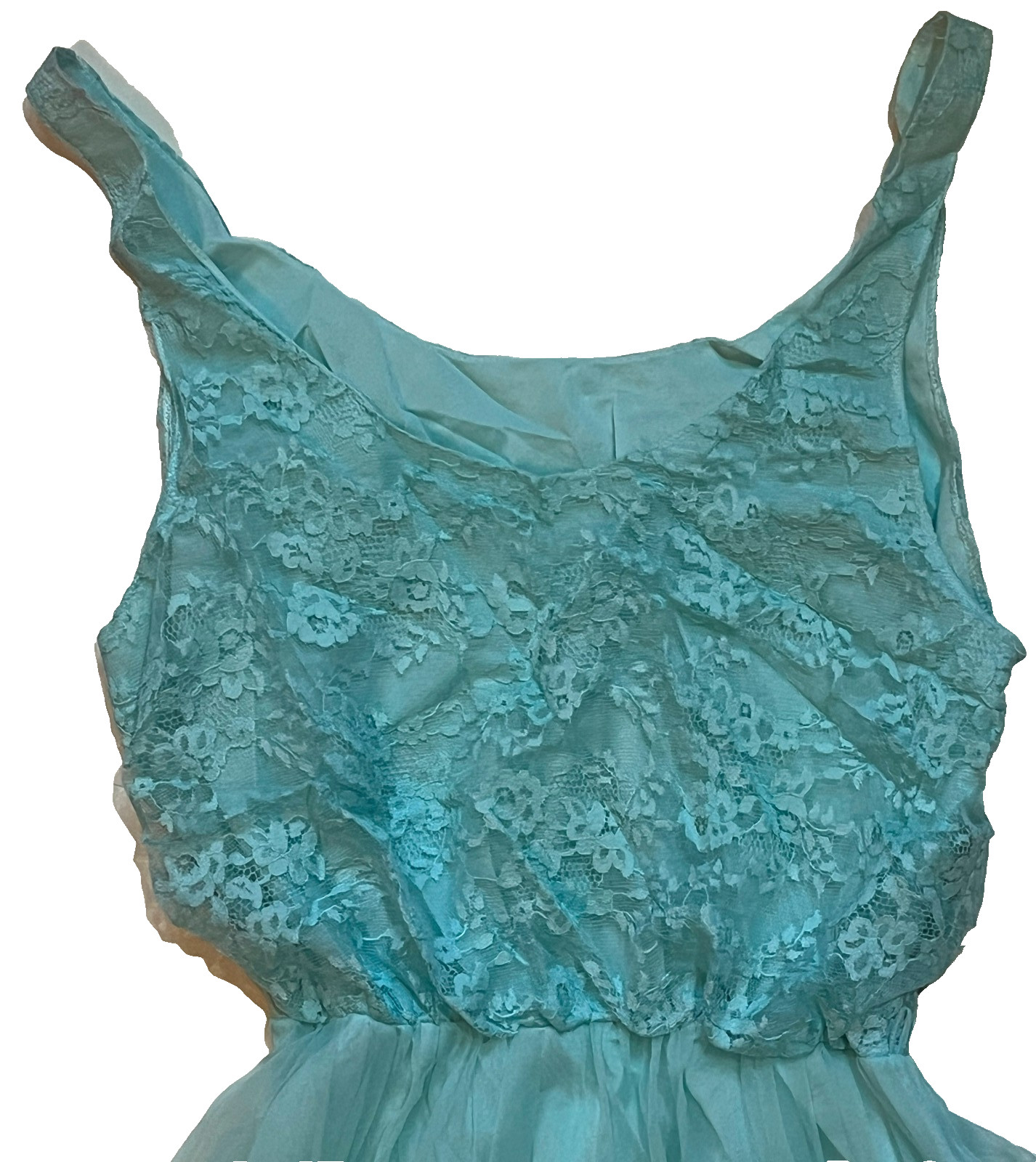 1960s VAN RAALTE Blue Lace Chiffon Lingerie Baby Doll Night Gown Small Nylon VTG